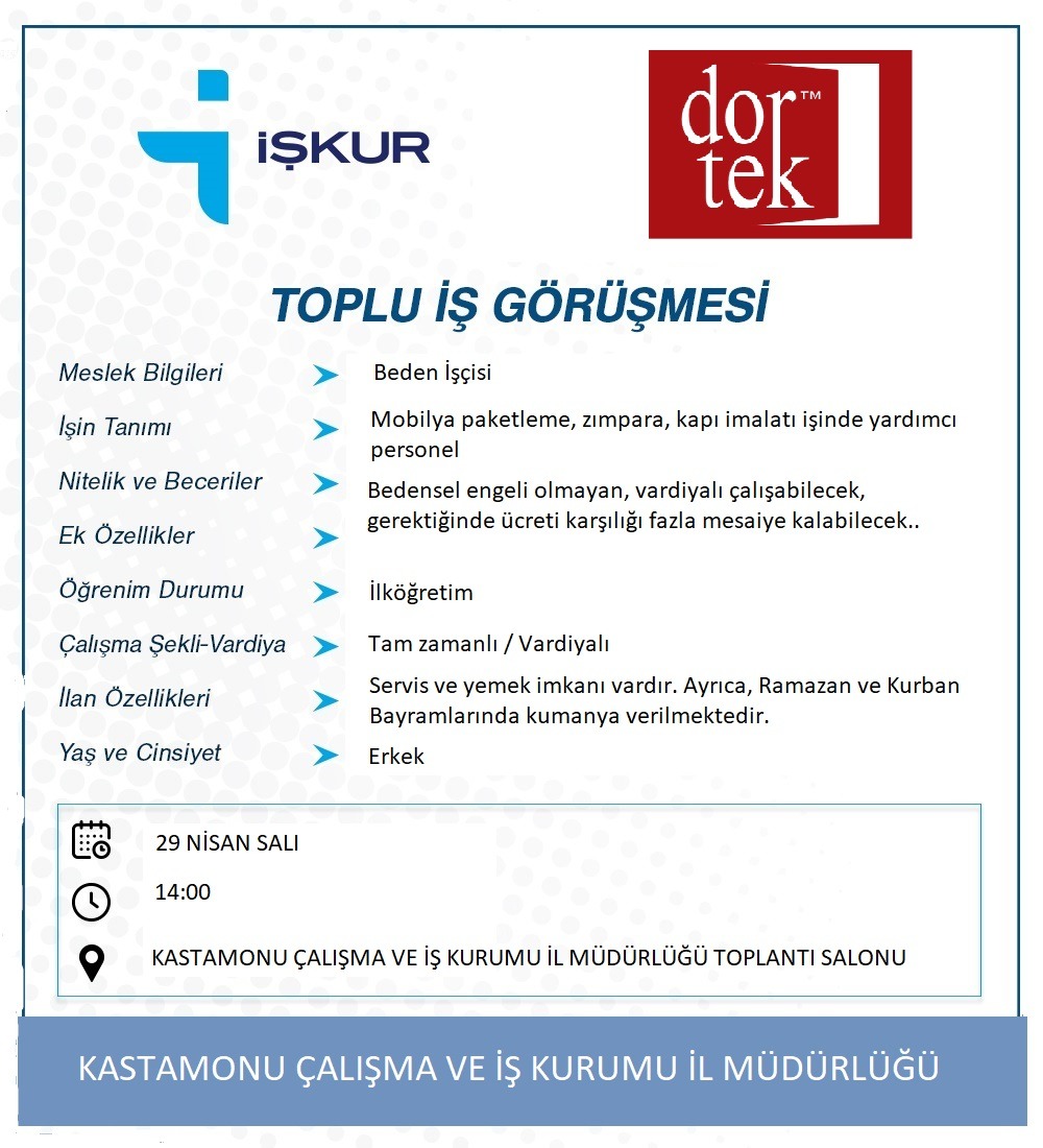 Görüşme, 29 Nisan 2025 Salı günü saat 14.00’te Kastamonu İŞKUR Toplantı Salonu’nda gerçekleştirilecek.