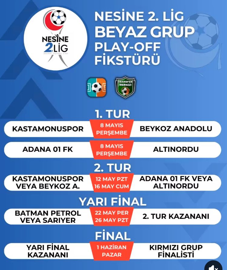 2. turun galibi ile Batman Petrolspor veya Sarıyer ile 22 ve 26 mayıs tarihlerinde yarı finalde mücadele edecek.