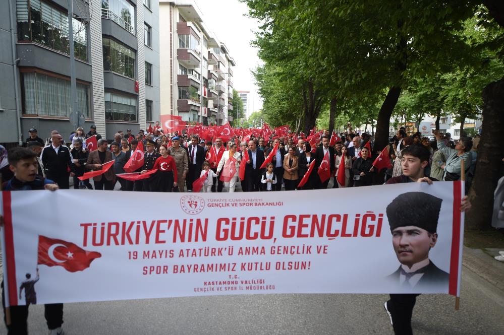 19 Mayıs Atatürk'ü Anma, Gençlik ve Spor Bayramı Kastamonu’da coşkuyla kutlandı. Kutlamalar çerçevesinde yaklaşık 40 metrelik Türk bayrağıyla yürüyüş düzenlendi. Kışla Parkı’ndan başlayan yürüyüş, Cumhuriyet Meydanında sona erdi. Kastamonu Valiliği öncülüğünde gerçekleştirilen etkinlikte, Kastamonu Belediyesi Bando Takımı eşliğinde marşlar söylendi. Yürüyüşün ardından Cumhuriyet Meydanı'nda saygı duruşunda bulunarak İstiklal Marşı okuyan katılımcılar, müzik eşliğinde atabarı oynadı.