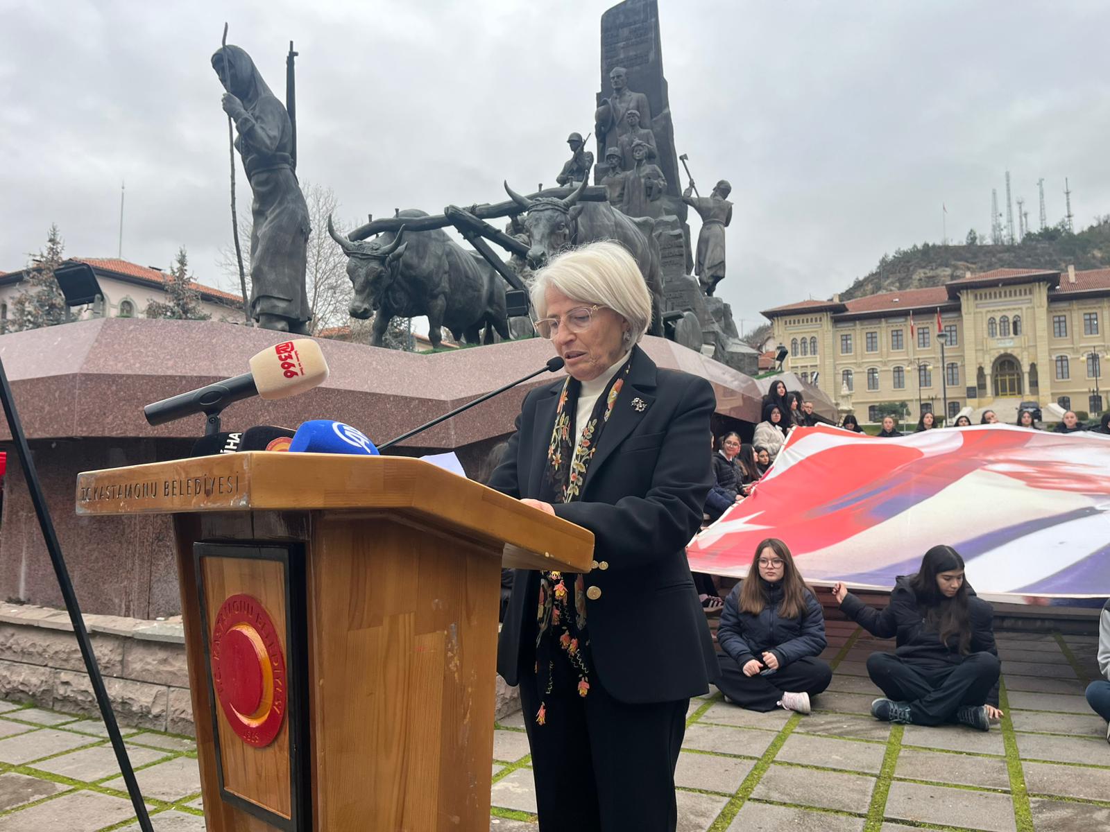 “Milletimizin bağımsızlık destanında özel bir yeri olan 10 Aralık İlk Türk Kadın Mitinginin 106’ncı yıldönümünü kutlamak, kahraman kadınlarımızı anmak, ahde vefamızı bir kez daha sunmak için bugün burada toplandık.
