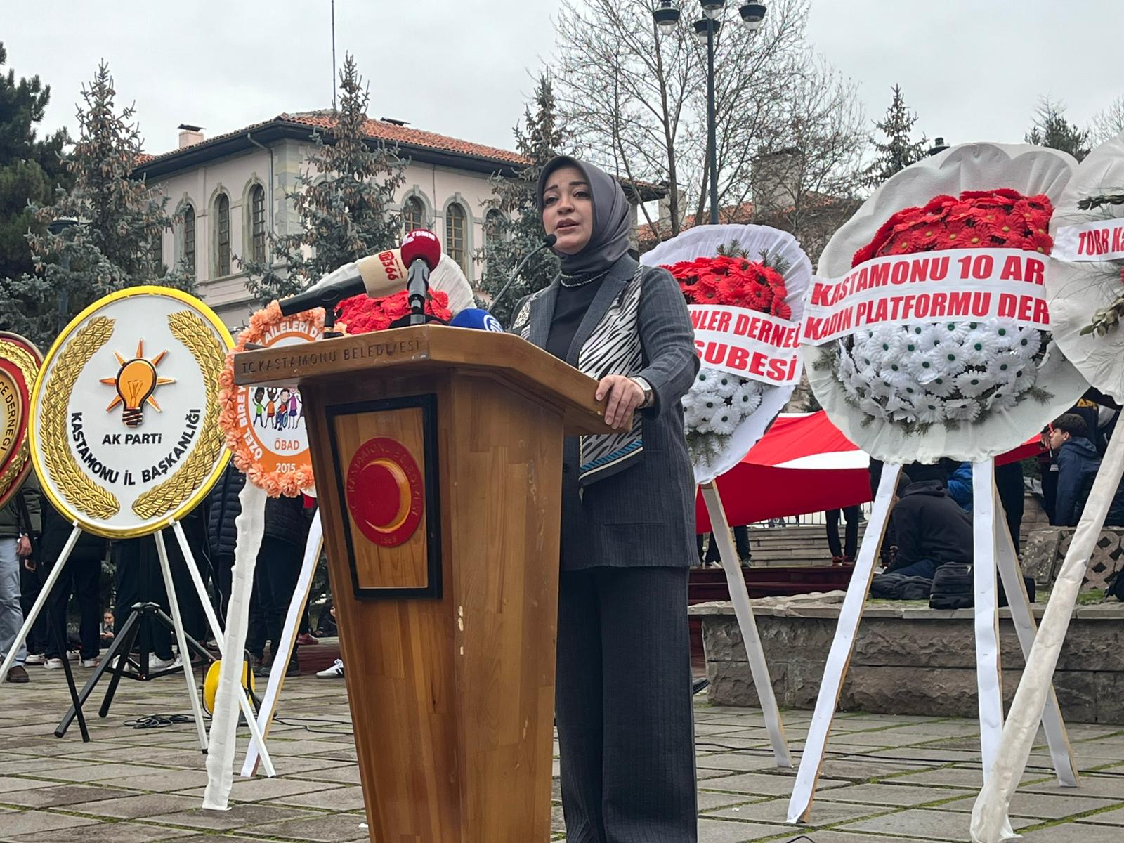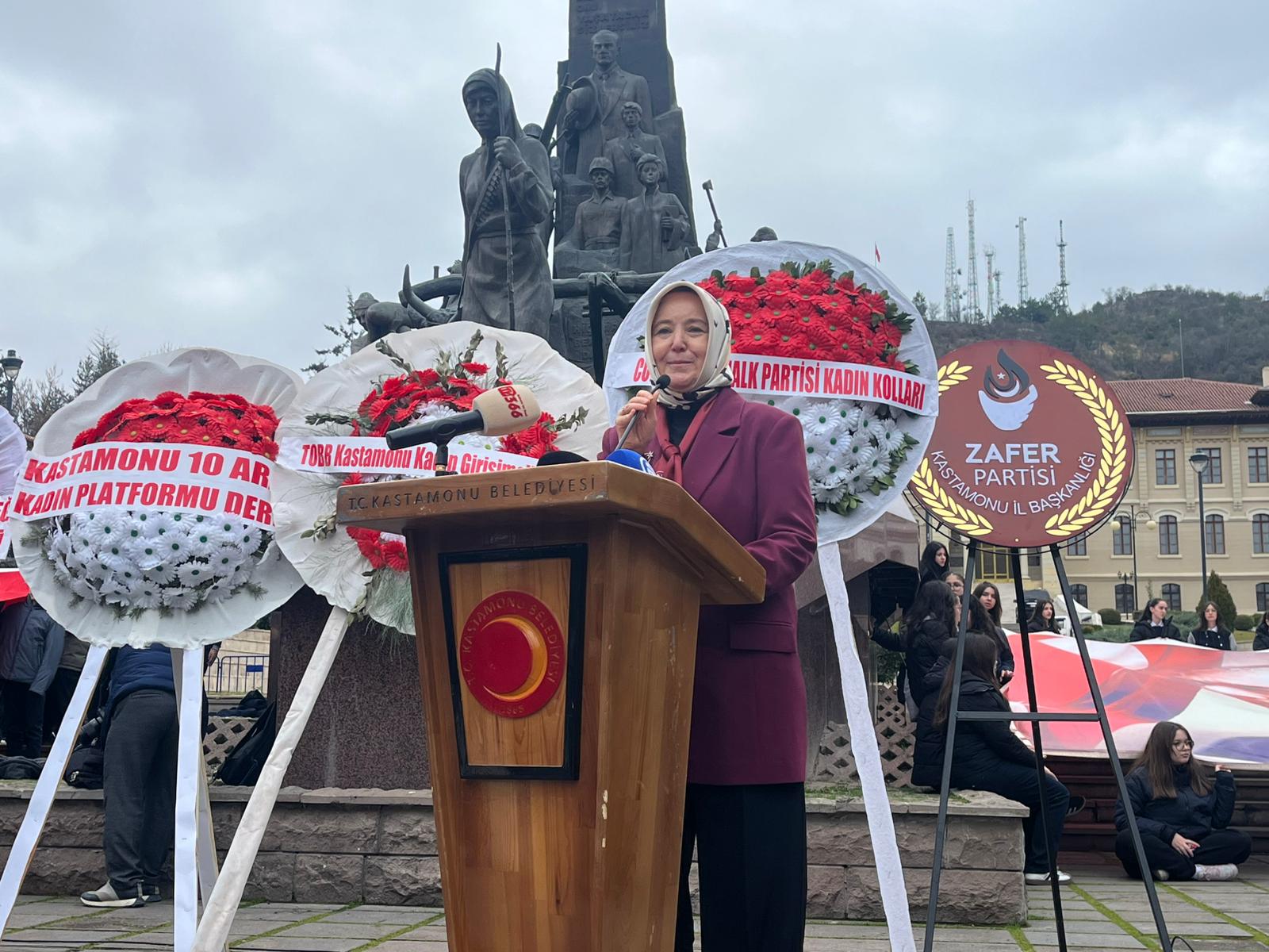 Kastamonulular olarak… 106 yıl önce analarımızdan aldığımız tembihi tutuyoruz. Vatan toprağımızı kutsal, istiklal ve istikbalimizi vazgeçilmez, hürriyetimizi olmazsa olmazımız, dünya barışını hasletlerin en kıymetlisi görüyoruz. 10 Aralık 1919’u tarihin altın sayfalarına işleyen Kastamonu kadınlarını vefa, minnet ve rahmetle yad ediyoruz; devletimizin emrinde, ay-yıldızımızın ışığında, milletçe birliğimizi daim kılarak ve dirliğimizi baki tutarak, vatanımızın refahı ve tüm dünyanın selameti yolunda Kastamonu kadınları olarak çalışmayı ilelebet sürdürmeye bir kez daha söz veriyoruz.” dedi.