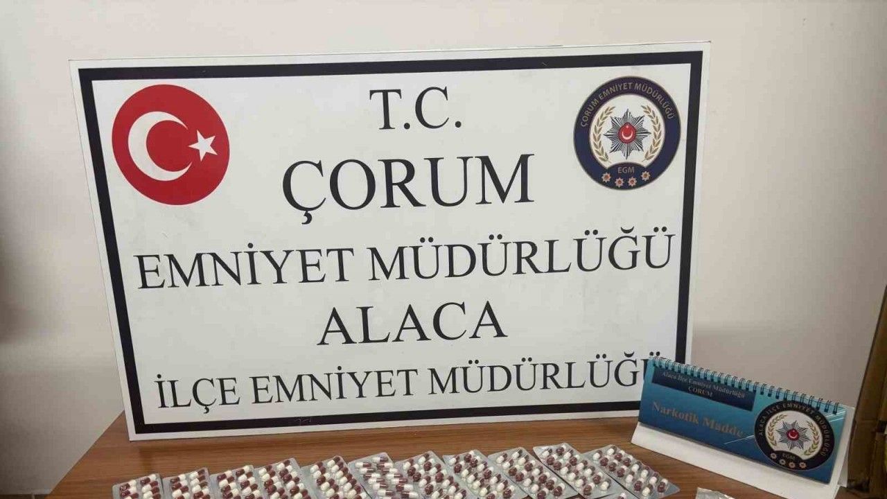 Edinilen bilgiye göre, Alaca İlçe Emniyet Müdürlüğü Asayiş Büro Amirliği ekipleri, Zile Caddesi’nde bulunan bir akaryakıt istasyonunda durumundan şüphelendikleri Y.K. durdurdu. Ekiplerce şahsın üzerinde yapılan aramada, 266 adet sentetik ecza hap ile 1.59 gram metamfetamin maddesi ele geçirildi. Konuyla ilgili gözaltına alınan Y.K. hakkında adli işlem başlatıldı.