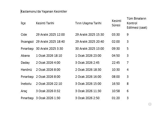 -Kastamonu Belediyesince 27.08.2025 tarihinde Bölge Müdürlüğümüzden yeraltı suyu arama belgesi talebinde bulunulmuştur. Bölge Müdürlüğümüzce 09.09.2025 tarih ve 6280663 sayılı yazısı ile gerekli yeraltı suyu arama izni verilmiştir. Belediye kuyular açılmıştır. Ancak aradan geçen süre zarfında açılan kuyulardan sağlanan suyun Gürleyik İsale Hattına bağlantısı yapılamamıştır. İşlerine geldiğinde alel acele neye derman olduğunu halen anlayamadığımız sarı otobüslerin ihalesini yapan irade Kuyular açıldıktan sonra 3-4 ayda bu kadar elzem bir konuda neden ihale yapamaz, anlaşılır gibi değil.