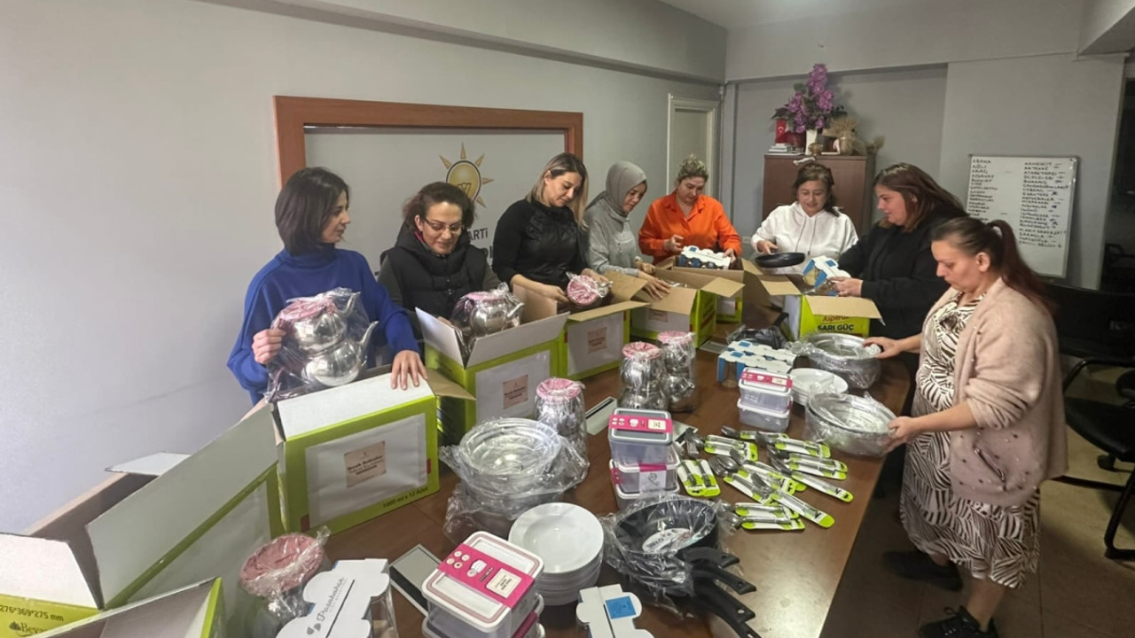 AK Parti Kadın Kolları Kastamonu İl Başkanı Av. Serap Ekmekci bir koli içinde en az 6 kişilik bir aileye yetecek şekilde tencere-tava, çaydanlık, tabak-kâse, bardak-su-