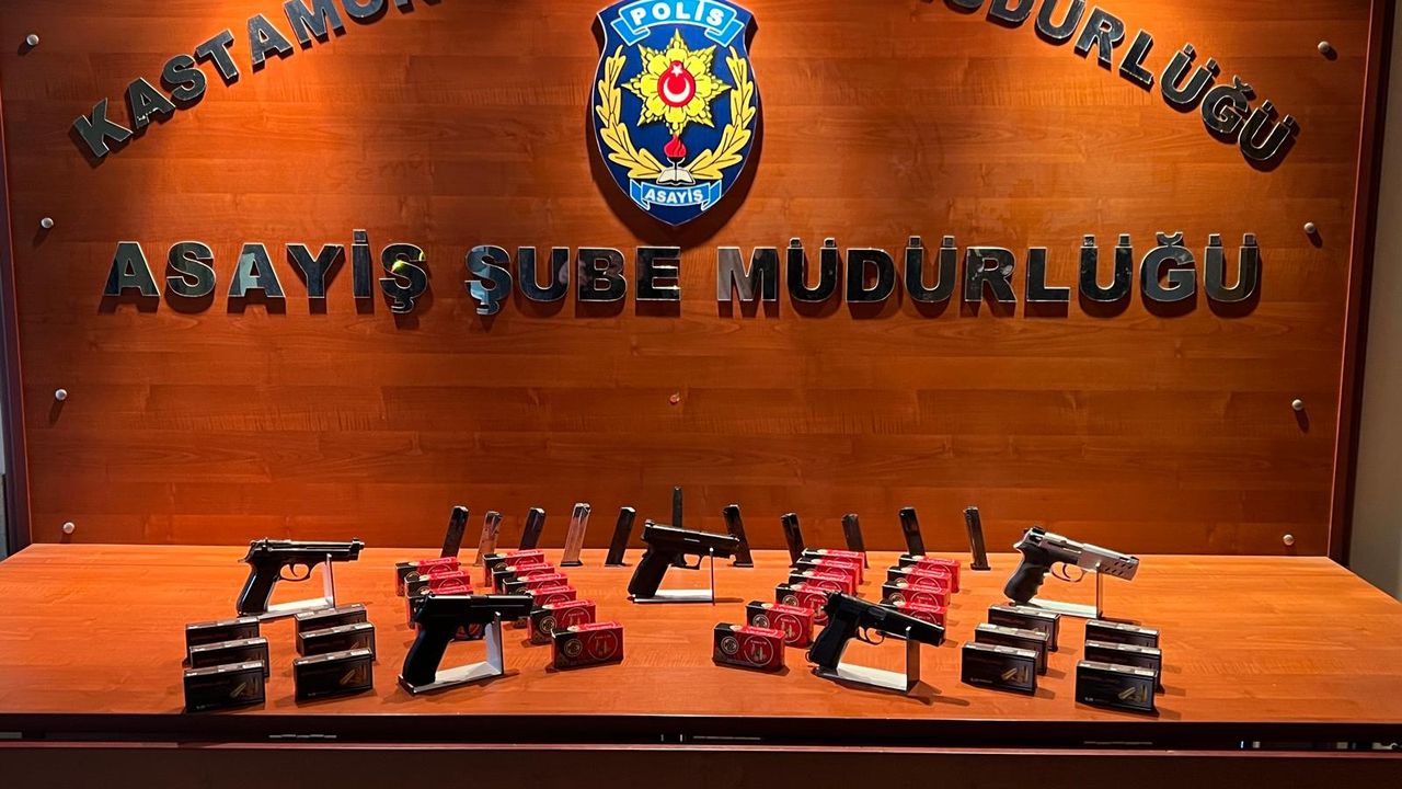 Düğün eğlencesi sırasında havaya ateş edilmesi olayıyla ilgili Kastamonu Cumhuriyet Başsavcılığı koordinesinde yürütülen soruşturma kapsamında tespit edilen bir ikamette arama gerçekleştirildi. Arama sonucu evden küçük çaplı bir cephanelik çıktı. 4 adet 9 mm çapında çeşitli markalarda ruhsatsız tabanca, 1 adet faturası ibraz edilemeyen kuru sıkı tabir edilen tabanca, 11 adet şarjör, bin 700’ü 9 mm çapında, 50’si 7,65 mm çapında olmak üzere bin 750 adet fişek ele geçirildi.