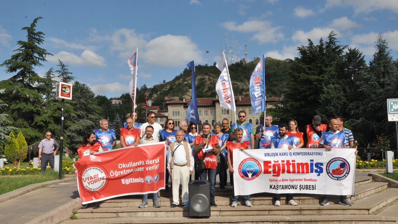 Eğitim-İş Kastamonu Şube Başkanı Ahmet Tevfik Bal, konuşmasında şu cümleleri kullandı: “-Daha kötü ne olabilir ki?- sorusuna her yeni eğitim-öğretim döneminde -bu kadar da olmaz!- dedirten iktidar, 2022-2023 eğitim-öğretim yılında da bu geleneğini bozmamış, eğitimde geçen yılları dahi mumla aratan bir dönemi ülkeye yaşatmıştır. Sonuna geldiğimiz bu eğitim döneminde gericileştirme ve niteliksizleştirme politikaları hız kazanmış, bu gidişe bir de ekonomik krizin eğitime yansıması eklenmiştir. Onca skandala rağmen dernek/vakıf maskesi takmış tarikatlar MEB protokolleri aracılığıyla eğitimde cirit atmaya devam etmektedir. Eğitimdeki bu gericileştirme hamleleri 28 Mayıs seçimleri biter bitmez hızlandırılmış, İzmir ve Eskişehir başta olmak üzere birçok ilimizde devlet okullarına pedagoji eğitimi almamış din görevlisi gönderilmesi bunun en somut örneği olmuştur. Seçimden hemen sonra İstanbul’da Bilal Erdoğan’ın yönettiği bilinen TÜGVA’ya 238 okulun tahsis edilmesi, -Çevreme Duyarlıyım, Değerlerime Sahip Çıkıyorum Projesi (ÇEDES)- kapsamında yapılan protokolle okullara -manevi danışman- adı altında imam, müezzin, vaiz, din hizmetleri uzmanı ve kuran kursu öğreticisi atanması eğitimde çok başlılığın artacağının da net sinyallerini vermiştir. Alanında uzman eğitimciler varken konuyla ilgisi olmayan kişileri ve yapıları eğitim sistemimize sokmak eğitim bilimine, laiklik ilkesine ve milli eğitimin temel ilkelerini oluşturan yasal mevzuata aykırıdır. Eğitim-İş olarak anayasamıza, yasalara ve yönetmeliklere açıkça aykırı; laik ve bilimsel eğitimle taban tabana zıt ÇEDES protokolünü yargıya taşıdık. Bugün de burada ve tüm Türkiye’de eğitim dışı kurumlarla gerici dernek ve vakıflarla imzalanan protokollere ve projelere karşı -çocukları korumak, vatanı korumaktır- anlayışıyla alanlardayız. Tüm yurttaşlarımıza sesleniyoruz, gelin bu protokolü birlikte reddedelim! Eğitime, geleceğimiz olan çocuklarımıza sahip çıkalım! Çünkü ÇEDES protokolü hukuksuzdur ve anayasamıza, yasalara ve yönetmeliklere açıkça aykırıdır. Laik ve bilimsel eğitimle taban tabana zıttır, ÇEDES protokolü tehlikelidir. Eğitim biliminden habersiz, çocuklarımıza nasıl yaklaşılacağını bilmeyen yetişkinleri okullara sokmak travmatik etkileri de beraberinde getirecektir. ÇEDES protokolü öğretmenlerin, eğitim emekçilerinin mesleki itibarına hakarettir. Eğitim-öğretim eğitimcilerin işidir. Okul yöneticilerine sesleniyoruz: Okullardaki eğitim faaliyetinin yasal çerçevede yürütülmesi sizlerin sorumluluk alanınızdır. Koltuğunuza değil, onun arkasında asılı olan başöğretmenin resmine bakın ve bu protokolleri reddedin. Eğitim emekçilerine sesleniyoruz: Sevgili meslektaşlarımız; öğrencilerimiz, bizlere başöğretmenin emanetidir. Onları, laiklik karşıtı uygulamalara terk etmeyiniz! Kimsenin sizin dersinizi bölme, gasp etme, sizin dersinizden öğrenci çıkarma hakkı yoktur. Bu tür girişimleri her şeyden önce öğrencileriniz, sonra mesleki itibarınız için reddediniz! Velilerimize sesleniyoruz: Çocuklarınızın sözde değerler eğitimi adı altında manen ve fiziken güvencede hissetmeyecekleri hiçbir uygulamayı kabul etmek zorunda değilsiniz. Onların geleceği için bu protokolü reddedin! Bu eğitim-öğretim yılı hem mesleki itibarının uğradığı saldırılar hem de alım gücündeki erime nedeniyle eğitim emekçisi için de karanlık bir dönem olmuştur. Mesleğe hakaret niteliğindeki Öğretmenlik Meslek Kanunu halihazırda sözleşmeli, ücretli, kadrolu adı altında kategorize edilerek sömürülen öğretmenleri bir kez daha haksız sıfatlarla ayrıştırmıştır ayrıca YÖK’ün aldığı kararla eğitim fakültelerinin dışında da farklı alanlarda öğrenim gören öğrencilerin pedagojik formasyon eğitimini “seçmeli ders” olarak almasının önü açılmış; bu yolla hem eğitimcilik sıradanlaştırılmaya çalışılmış hem de ataması yapılmayan öğretmenlere bir haksızlık daha yapılmıştır. Anayasal bir hak olan güvenceli istihdamın katli olan ücretli ve sözleşmeli öğretmenlik ayıbı sürdürülmüş, ücretli öğretmenlerin büyük bir çoğunluğunun aldığı ücretler asgari ücretin altında kalmıştır. Öğretmeni, memuru, hizmetlisi ve diğer eğitim emekçilerinin aldığı ücretler, giderek artan hayat pahalılığı nedeniyle ay sonunu getirmeyi dahi mümkün kılmayan bir orana düşmüştür. Eğitim emekçilerinin aldıkları maaşlar yoksulluk sınırı olarak belirlenen rakamın çok altında kalmıştır. Eğitim emekçileri geçinmekte, yarını düşünmekte, kendilerini işlerine adamakta zorluk çeker duruma gelmişlerdir. Acilen maaş ve ücretlerde günün koşullarına göre düzeltme yapılmalıdır. Seçim öncesinde verilen sözler derhal yerine getirilmelidir. Bu böyle gidemez! Dünyada başöğretmen unvanlı bir liderin kurduğu tek ülke olan Türkiye Cumhuriyeti’nde eğitim ve eğitim emekçisi bu kadar değersizleştirilemez! Eğitim-İş olarak bu arsız kuşatmaya “dur” demek için bir kez daha harekete geçiyoruz. Yoksulluk sınırının altında olan maaşlarımızın enflasyon karşısında sürekli erimesini protesto etmek için, Mesleki itibarımıza yapılan saldırılara ve haklarımızı gasp etme girişimlerine karşı çıkmak için, Eğitim sistemimizin üzerine çöken gerici ve piyasacı karanlığa dikkat çekmek için, Çocuklarımızın eşit ve nitelikli eğitim hakkının gasp edilmesine karşı durmak için, Eğitim dışı kurumların, dernek maskesi takmış tarikatların sistematik olarak eğitime dahil edilme girişimlerine boyun eğmeyeceğimizi göstermek için Tüm Türkiye’de alanlardayız! Eğitime ve çocuklarımıza sahip çıkıyoruz! Uyarıyoruz!