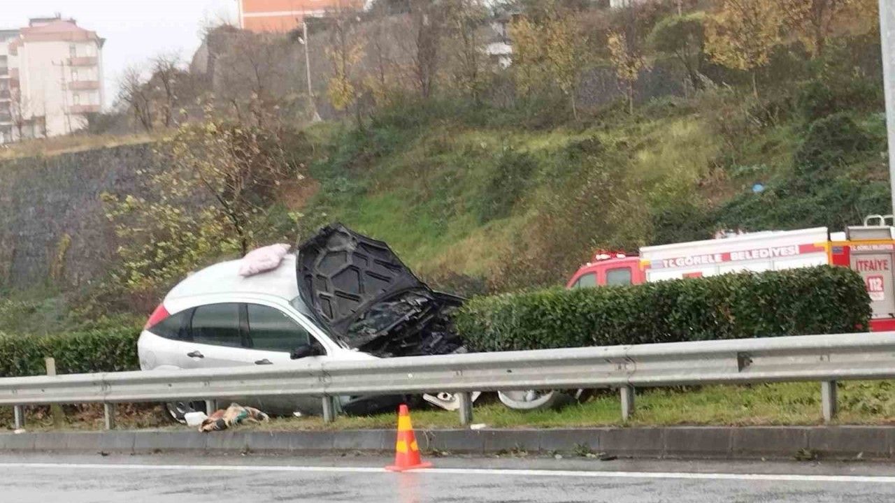 Görele ilçesinde bariyerlere çarpan otomobil alev aldı. Kazada araç sürücüsünün yaralandığı öğrenildi.