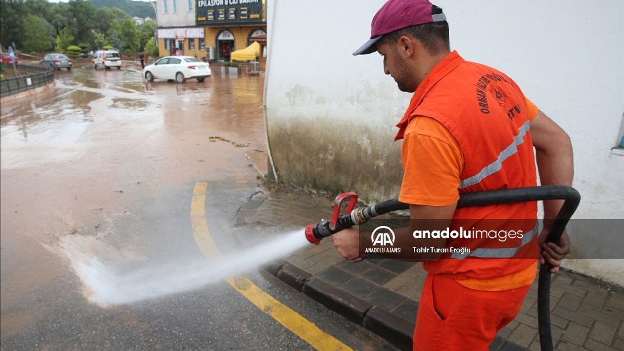 Sağanağın ardından meydana gelen su taşkınlarının iş yeri, araç, ev ve tarım arazilerine zarar verdiği Bartın'da hasarın giderilmesi için 19 ilden 1652 kişi, 11 ilden 153 iş makinesi ve 156 araçla çalışmaların sürdüğü bildirildi.