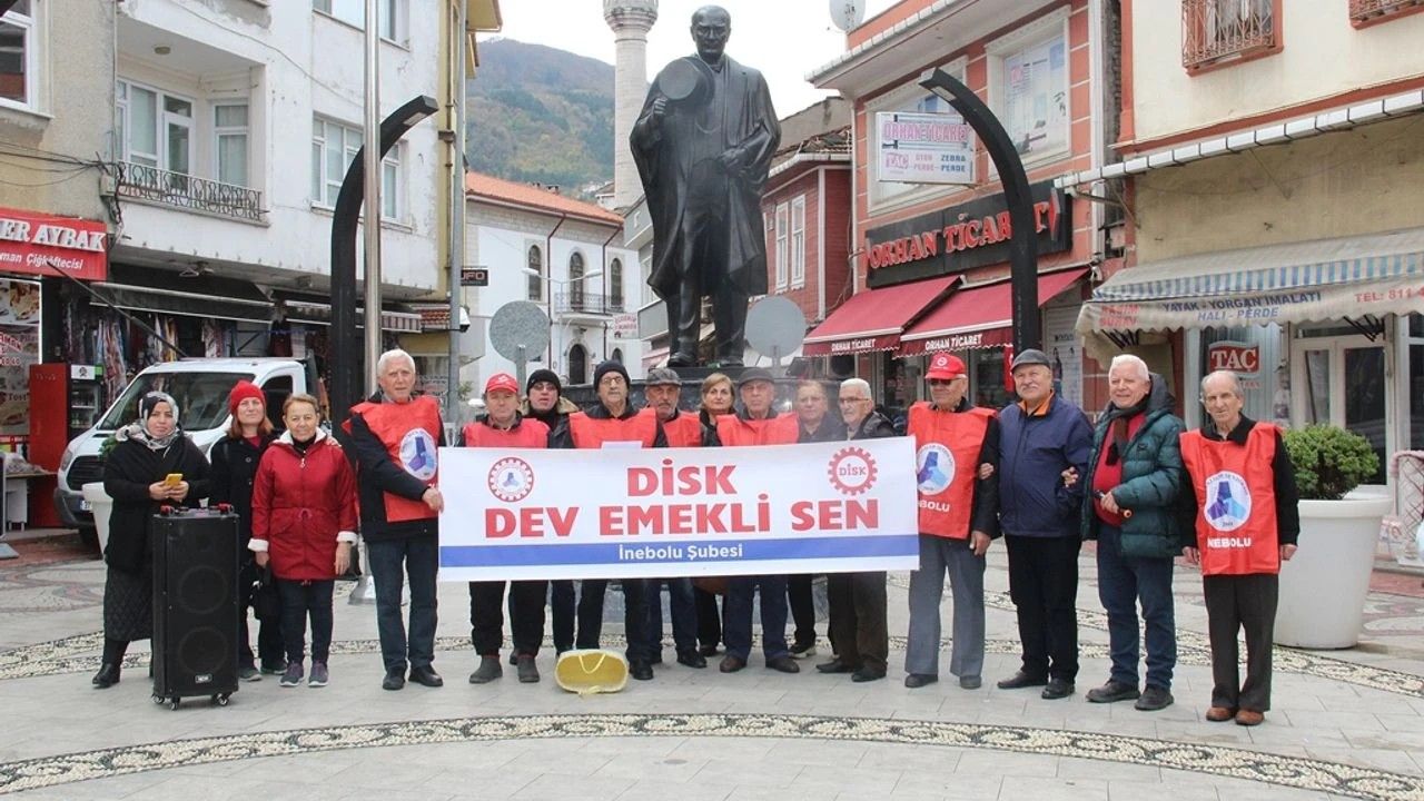 DİSK’e bağlı Dev Emekli Sendikaları’nın Türkiye genelinde eş zamanlı yaptığı açıklama kapsamında İnebolu'dan iktidara seslenen Disk Dev Emekli-Sen İnebolu Şubesi Temsilciliği tarafından yapılan açıklamada şunlar kaydedildi: “Aralık ayı yeni bir yılı karşılamanın umuduyla geçer. Ancak Türkiye’de her ay olduğu gibi bu ay da umutsuzluk, geleceksizlik, sefalet ve yaşam mücadelesiyle geçiyor. Aralık ayı, milyonlarca işçinin ve ailesinin bir yıl boyunca nasıl yaşayacağını belirleyen asgari ücret tespit ayı. Bu yıl da sefalet düzeyinde belirleneceği açık olan asgari ücret, yılın ilk aylarından itibaren açlık sınırının altına düşecektir. Diğer yandan yılın ilk günlerinde TÜİK tarafından “resmi enflasyon oranı” açıklanacaktır. Bir kez daha emekçilerin, emeklilerin yaşam koşullarını yansıtmayan bir enflasyon oranı, emekçilerin maaşlarına; emeklilerin aylıklarına yansıtılacak zam oranını belirleyecektir. Asgari ücretin açlık sınırı altında kaldığı Türkiye’de, emekli aylıkları asgari ücretin dahi çok altında belirlenecektir. Ve emeklilerden açlık sınırının yarısını geçmeyen aylıklarıyla barınmaları, doktora gitmeleri, mutfak alışverişlerini karşılamaları ve faturalarını ödemeleri beklenecektir. Bu tespitleri kolaylıkla yapabildiğimiz için, iktidarın politikalarını kestirmenin ve bugünden yarının koşullarını öngörmenin hiç de zor olmadığı bir ülkede yaşıyoruz. Ancak yıllardır bizlere dayattıkları sefalete, açlığa, yoksulluğa alışmayacağımızı da bildiriyoruz. Açlık sınırı altında asgari ücret dayatmalarına alışmayacağız. Asgari ücretin altında emekli aylığı dayatmalarına alışmayacağız. Dolaylı, dolaysız vergilerle alın terimizin sermayeye peşkeş çekilmesine alışmayacağız. ‘’
