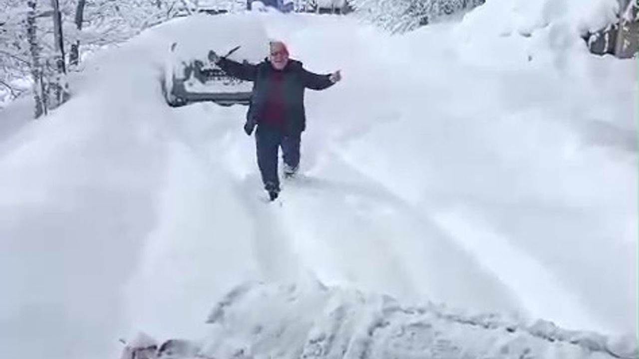 Bozkurt ilçemize bağlı Yaşarlı Köyünde yolda mahsur kalan vatandaş, Özel İdare'nin kar mücadele aracını görünce sevinçten oynadı. O anlar İş Makinesi Operatörü Enes Rençber tarafından kaydedildi.