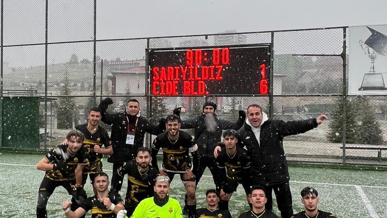 Kar yağışı altında oynanan karşılaşmada sarı-siyahlı ekip adeta gol şov yaptı. Mücadeleyi farklı kazanan Cide Belediyespor, liderliğini ve namağlup unvanını korumayı başardı.