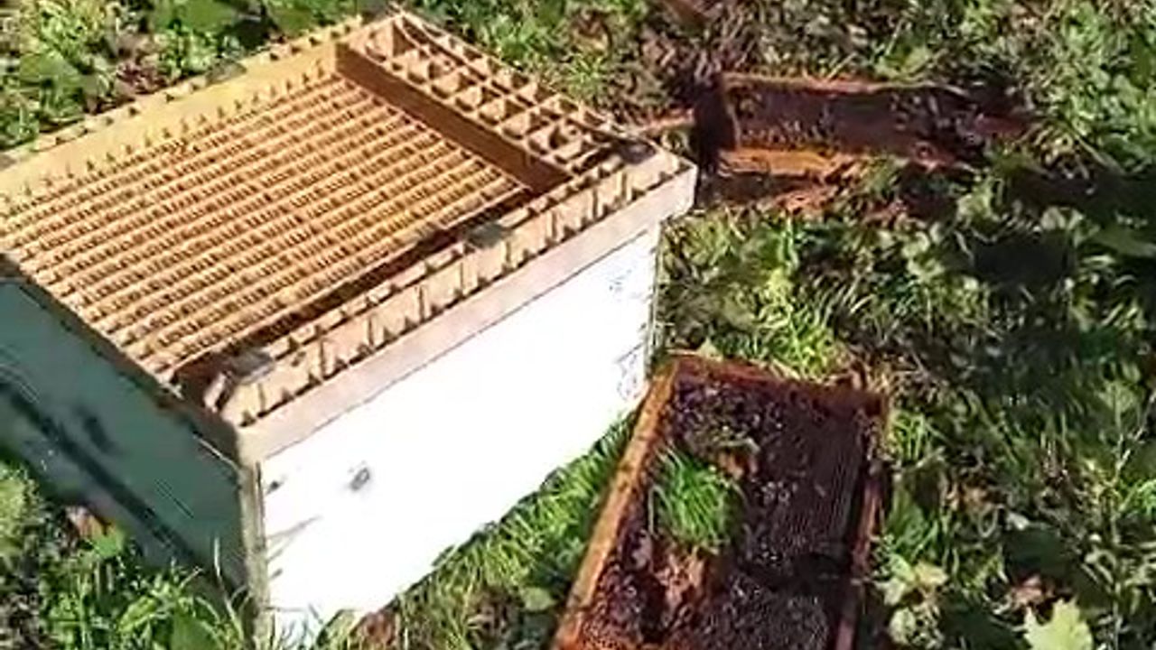 Olay, Cide’ye bağlı Çakırlı Köyü’nde meydana geldi. Savaş Uygun’a ait arılığa giren ayılar, kovanları dağıtarak kullanılmaz hale getirdi. Köy dışında bulunan arılığına giden Uygun, kovanları parçalanmış halde görünce büyük şaşkınlık yaşadı.
