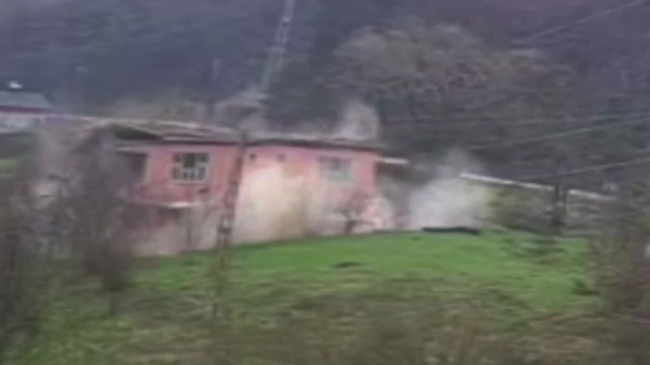 Olay, Cide’ye bağlı Alayüz Köyü Örtülü Mahallesi’nde meydana geldi. Mehmet Altıntaş’a ait 2 katlı bina, bölgede yaşanan heyelan riski nedeniyle daha önce tedbir amaçlı olarak boşaltılmıştı. Son günlerde etkili olan kar yağışlarının ardından eriyen kar sularının toprağı yumuşatmasıyla birlikte bölgede birçok noktada heyelanlar yaşandı. Riskli olduğu için boşaltılan bina ise bu süreçte tamamen çökerken, o anlar güvenlik kamerası tarafından saniye saniye kaydedildi.