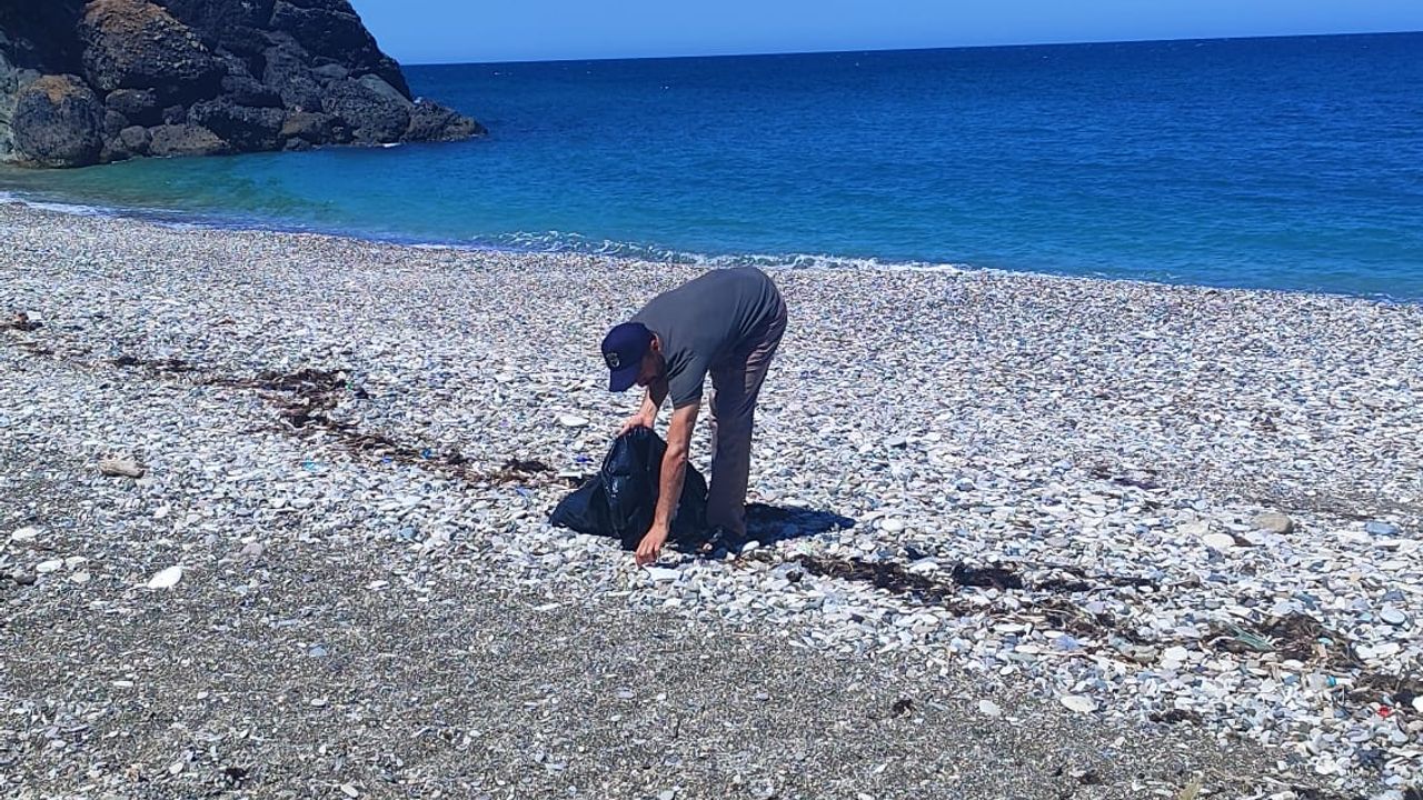 Cide’nin şirin sahil köylerinden birisi olan Uğurlu köyünde köy imam hatibi Nevzat Ozcan ile muhtar Erdoğan Yavuz, sahile bilinçsiz vatandaşlar tarafından atılan çöpleri topladılar.