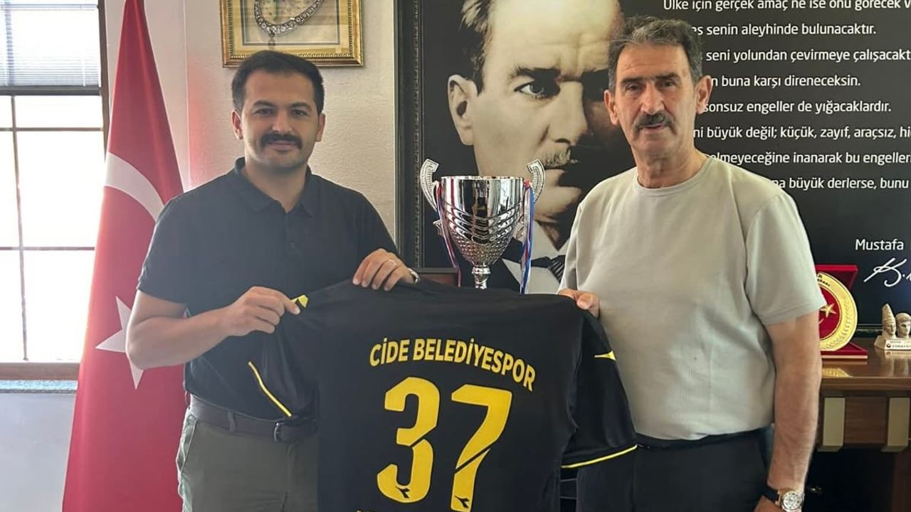 "Cide Belediyespor Yönetim Kurulu olarak Belediye Başkanımız Sn. Nejdet Demir’i ziyaret ettik. Genç ve dinamik ekibimizle çıktığımız bu yolda bizlere her konuda destek olan ve önümüzü açan başkanımızla, planlamalarımız üzerine verimli bir fikir alışverişinde bulunduk. Ziyaretimizin anısına yeni sezon formamızı kendilerine hediye ettik. Değerli destekleri için Başkanımıza teşekkür ederiz."
