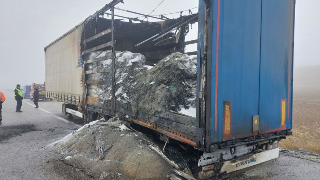 Yangında tırın dorsesinin büyük bölümü yandı.