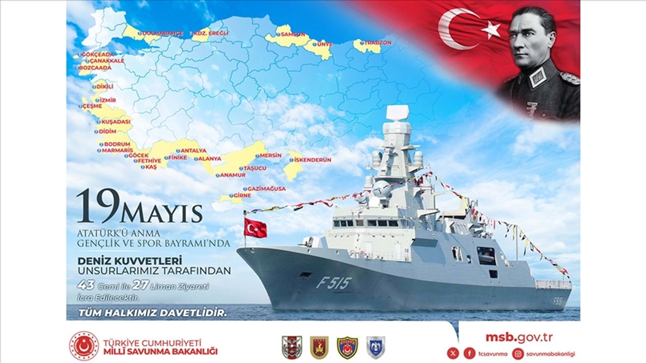 Bakanlık tarafından yapılan açıklamada, "Deniz Kuvvetleri unsurları, 19 Mayıs'ta büyük bir coşkuyla 43 gemi ile 27 limanı ziyaret ederek, bu özel günü kutlamak için hazırlıklarını tamamladı. Tüm vatandaşlarımızı bu anlamlı etkinliğe davet ediyoruz." denildi.