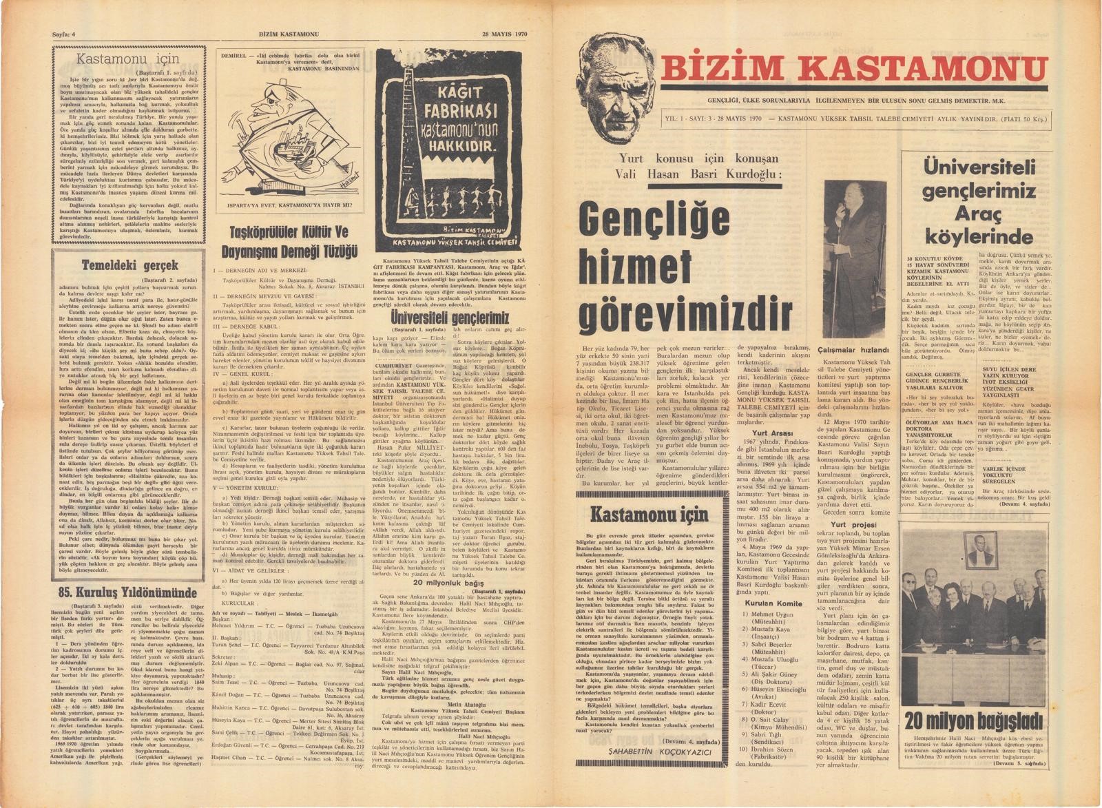 Gazeteyi çıkaran “Kastamonu Yüksek Talebe Cemiyeti’ne yarım asır sonra selam ola.”)