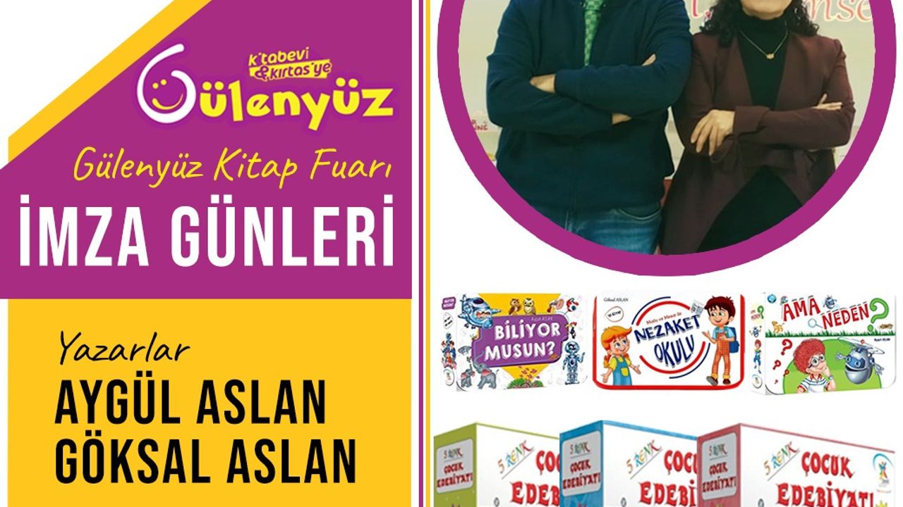 Çocuklara yönelik birçok eserin yazarları olan Aygün Aslan ve Göksal Aslan, 11-12 Mart tarihlerinde 12.00-16.00 saatleri arasında Barutçuoğlu AVM’de minik okurları ile buluşacaklar. Eğitimci Yazarlar Göksal ve Aygül Aslan; ülkemizin her ilinde velilere ve Öğretmenlere“Çocuk Edebiyatı” , “Okuma Kültürü”, “Okuma Alışkanlığı” “Çocuğum Kitap Okumayı Sevmiyor, Ne yapabilirim?” konularında konferanslar vererek çok sayıda okulda, yazar-okur söyleşileri gerçekleştirdiler.