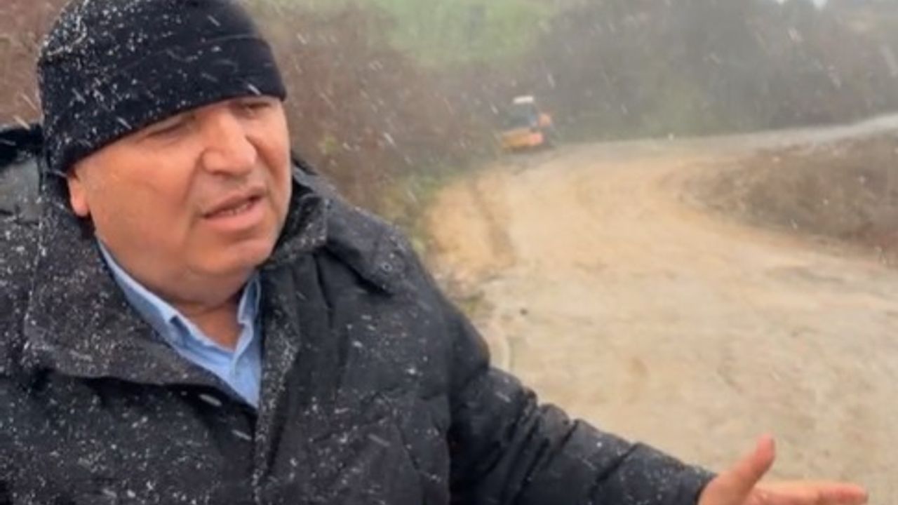 “Kıymetli Cideliler, şu an Abdülkadir Köyü köy içinden kullandığımız servis yolundayız. Buranın acilen asfalta ihtiyacı var. Karayolları ekipleri heyelan sonrası burayı sürekli tamir ediyor. Ancak tonajlı araçlar yolu zorladığı için bazı bölümlere taş serilmek zorunda kalındı. Kötü hava şartlarını yaşıyoruz. Havalar düzelmeden buraya asfalt yapma şansımız yok. Çünkü asfalt plentleri bu hava şartlarında çalışmıyor.