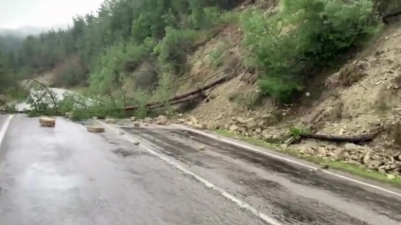Aşırı yağışların neden olduğu heyelanda yamaçlardan topan taş ve toprak kütleleri ile ağaçlar yola düştü. Ulaşıma bir süre kapanan yol temizlik çalışmasının ardından yeniden trafiğe açıldı.