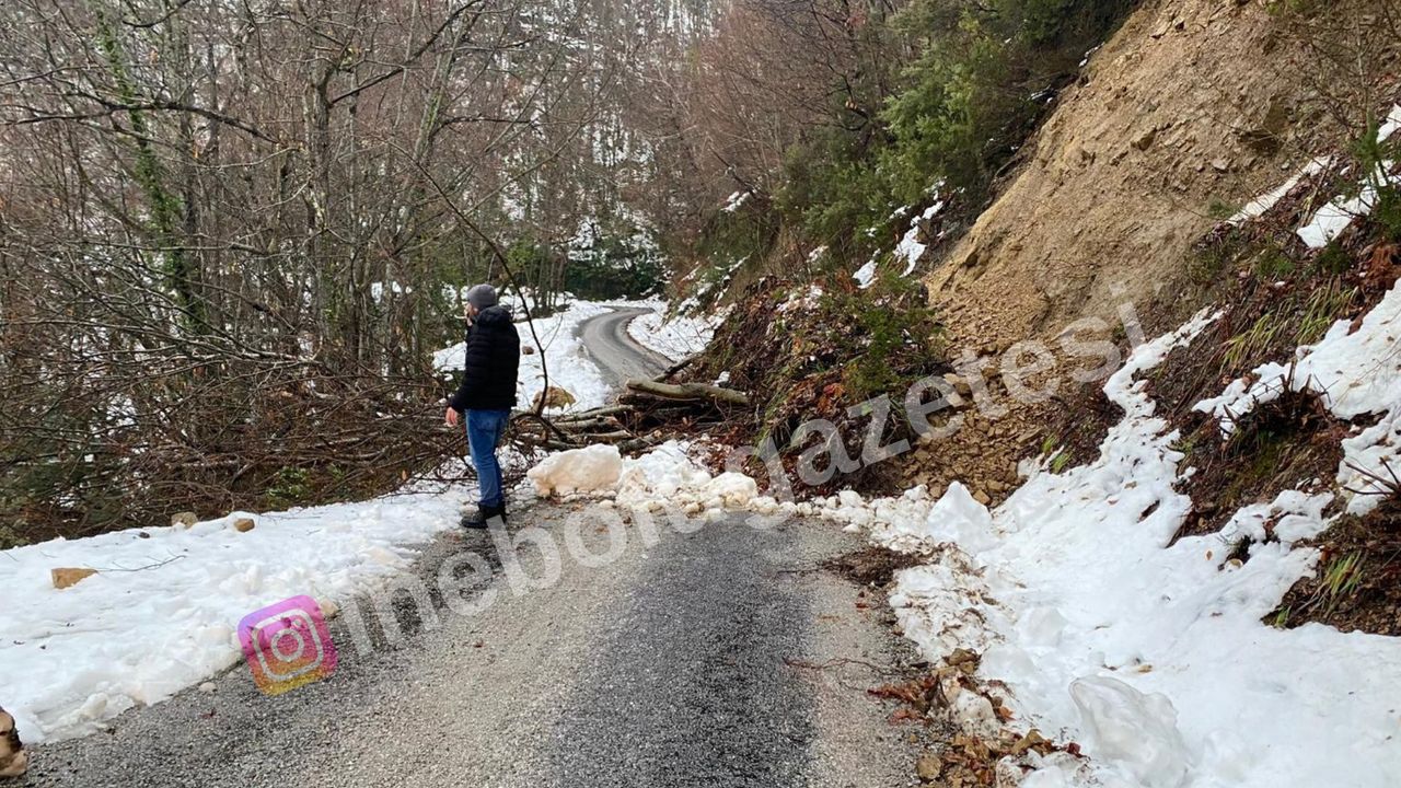 Yamaçlardan kopan toprak ve taş kütleleri ile ağaçlar yola düştü. Heyelan nedeniyle grup yolu ulaşıma kapandı.