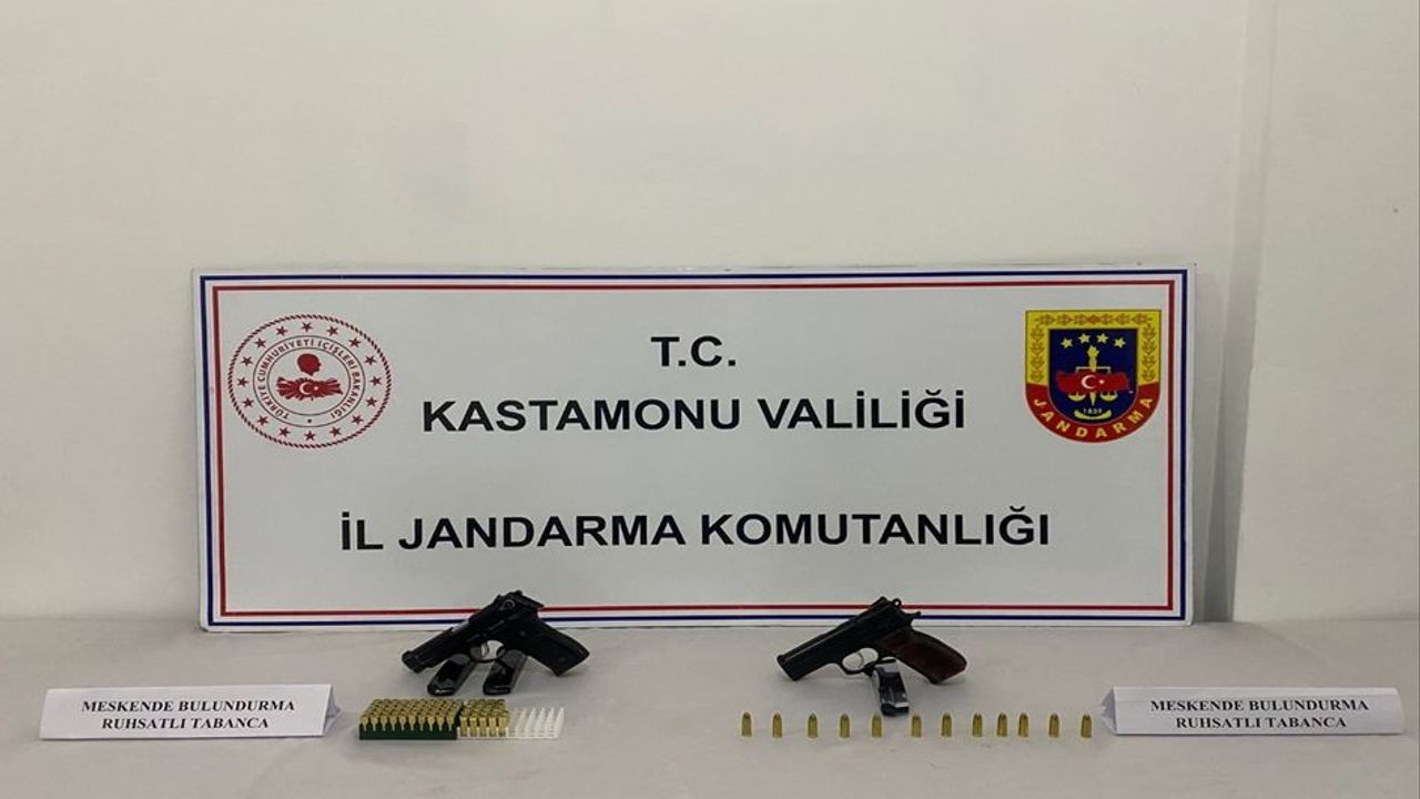 Kastamonu İl Jandarma Komutanlığı'nın "genel güvenliğin kasten tehlikeye sokulması" suçu kapsamında gerçekleştirdiği çalışmalar neticesinde: H.K., T.D., H.K., E.P. ve H.C.S. isimli şahısların ikametlerinde ve üst aramalarında; 5 adet tabanca, 5 adet tabanca şarjörü, 114 adet tabanca fişeği ele geçirildi.