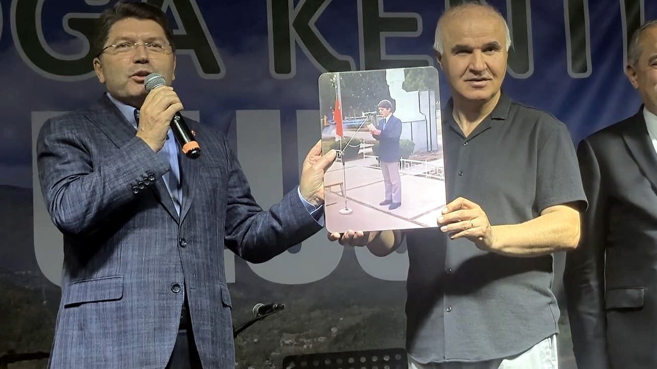 Konuşmasının ardından ise Bakan Tunç'a lise döneminde çekildiği bir fotoğrafı hediye edildi. Karabük Bartınlılar Derneği Başkanı Yüksel Korkut tarafından verilen fotoğrafı görünce çok duygulanan Bakan Tunç, okul hatırlarını ve fotoğrafın hikayesini anlattı. Tunç, "İlkokulu köyde okudum. Tabii ortaokul için babam, 'Köyden Ulus'a gidip gelmen zor olacak. Devlet parası yatılı sınavlarına katılman lazım. Çalış, sınavları kazan, parasız bir yatılı okula, seni verelim' dedi. Babamın yüzünü kara çıkartmamak için oturduk, dördüncü beşinci sınıfta, sürekli ders çalışarak, Kastamonu Göl Öğretmen Lisesi'ni kazandım. Valizimiz boyumuzdan yüksekti. Bizi teslim ettiler Kastamonu'ya. Orada ortaokul ve lise olmak üzere 6 yıl yatılı okudum. Bu resim, çok büyük sürpriz oldu. Son sınıfta kompozisyonda Kastamonu il birincisi olmuştum. Anons yapmışlardı, 'birinci oldu' diye. Bayrak töreni, resimde de belli oluyor. Kompozisyonu, okul müdürü 'okuman lazım' dedi, okuduk. Bu resmi bulmuşlar, nereden buldularsa. Karabük Bartınlar derneğimiz, bugün çok anlamlı bir hatırayı bize takdim ediyor. Gerçekten çok duygulandım" dedi.