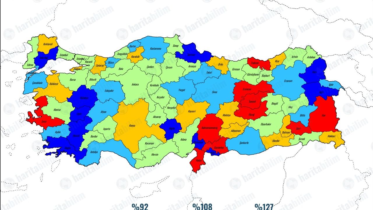 Türkiye genelindeki yerel yönetimlerin mali performansını ortaya koyan çalışma, illerin öz kaynaklarıyla giderlerini karşılama oranlarını görselleştiriyor. Analizde kullanılan renk skalasında kırmızıdan koyu maviye doğru ilerledikçe bütçe disiplini ve bütçe fazlasının arttığı görülüyor. Güncel veriler, bazı illerin mali yapılarının güçlendiğini ve finansal sürdürülebilirlik açısından önemli bir seviyeye ulaştığını ortaya koyuyor.