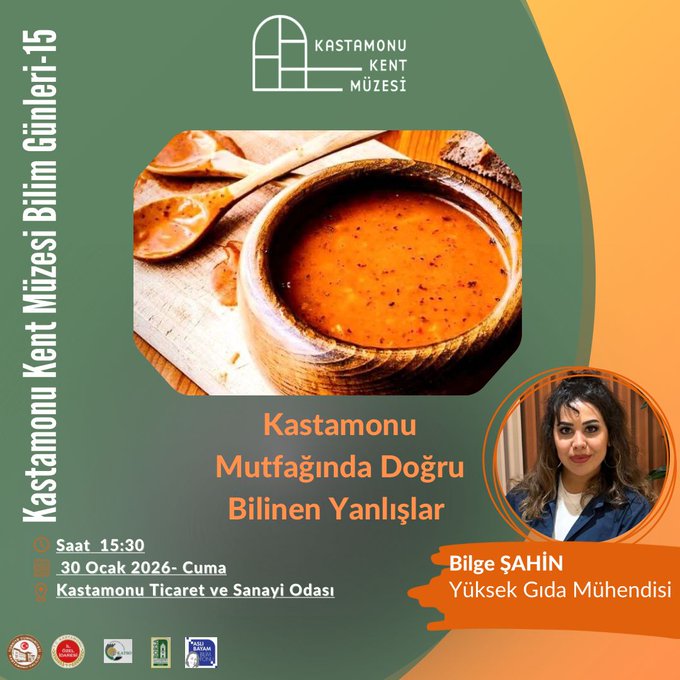 Programda konuşmacı olarak Bilge Şahin yer alacak. Yüksek Gıda Mühendisi Şahin, Kastamonu mutfağında kuşaktan kuşağa aktarılan uygulamaları; gıda güvenliği, besin değeri ve doğru pişirme teknikleri açısından değerlendirecek. Etkinlikte, yaygın inanışların bilimsel karşılıklarıyla ele alınarak doğru uygulamalara ışık tutulması hedefleniyor.