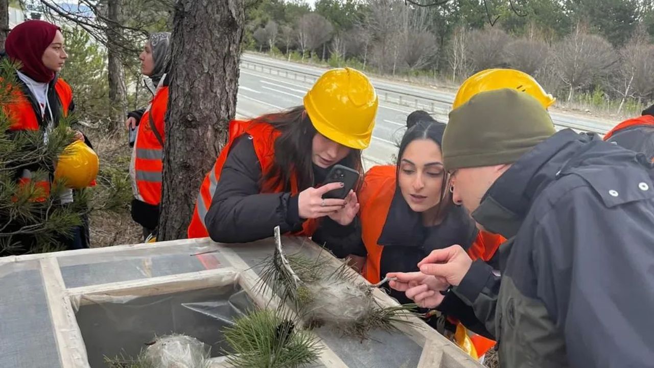 Kastamonu Orman İşletme Müdürlüğüne bağlı Kastamonu Orman İşletme Şefliği sorumluluk sahasında yer alan ormanlık alanlarda, çam ağaçlarına zarar vererek orman sağlığını tehdit eden çam kese böceğinin (Thaumetopoea pityocampa) popülasyonunu kontrol altına almak amacıyla, 2026 yılı ilkbahar döneminde mekanik mücadele yöntemlerinden biri olan “kafes yöntemi” uygulanmaya devam ediyor.