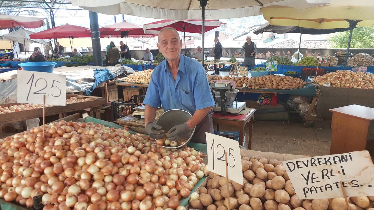 Önceki haftalarda 20-25 liraya kadar çıkan soğan patates, pazarda 10 ila 15 lira arasında satılıyor.