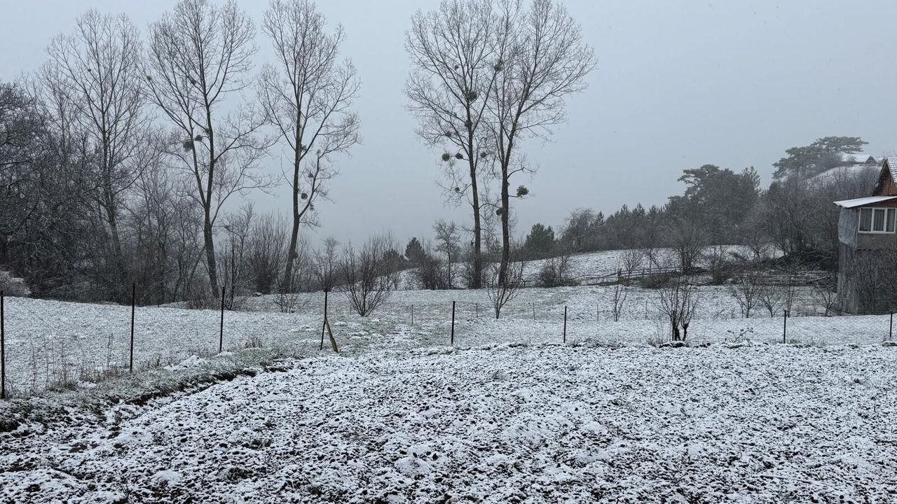Kar yağışıyla birlikte köyde kartpostallık görüntüler oluşurken, o anlar cep telefonu kamerasıyla kaydedildi.