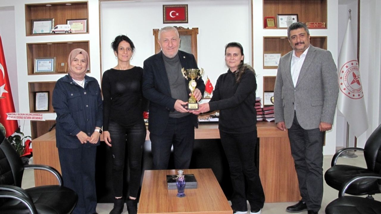 Kadın Voleybol Takımı adına; Nurcan Taşpınar, Rahşan Herkilioğlu ve Özlem İlçin’den oluşan takım temsilcileri, Bartın’da düzenlenecek olan iller arası turnuva öncesinde Halk Sağlığı Hizmetleri Başkanı Dr. Mehmet Yıldırım eşliğinde, İl Sağlık Müdürü Dr. Fevzi Yavuzyılmaz’ı makamında ziyaret ederek turnuvada kazandıkları kupayı paylaştılar.
