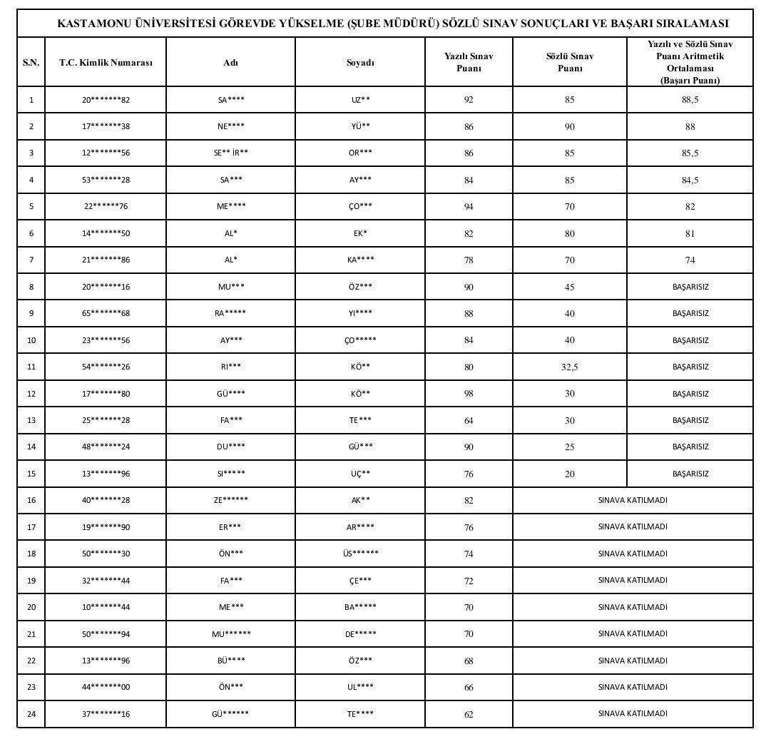 Kastamonu İstiklal Haber Merkezi’ne ulaşan bir memur, özellikle şeflik ve şube müdürlüğü sınavlarında yüksek puan alan bazı adayların elendiğini iddia etti.