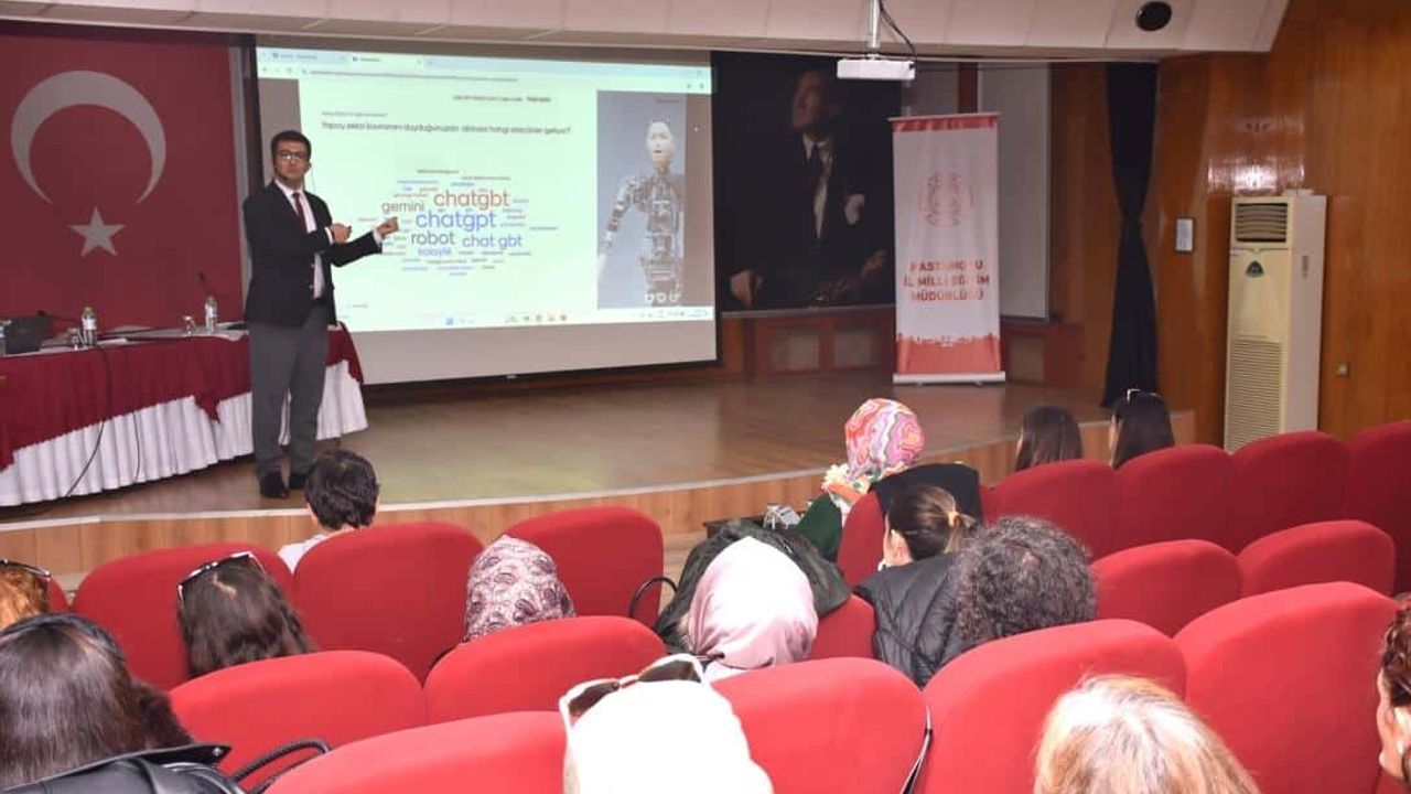 Karabük Üniversitesi Yabancı Diller Yüksekokulu Müdürü Doç. Dr. Mustafa Polat, yabancı dil öğretiminde yenilikçi yöntemler, yapay zeka destekli öğrenme ortamlarının önemi, aktif öğrenme modellerinin sınıf içi uygulamaları gibi konularda katılımcılarla kapsamlı paylaşımlarda bulundu.