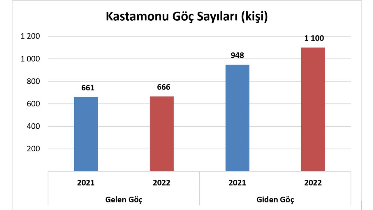 TÜİK, Uluslararası Göç İstatistikleri’ni yayınladı. Buna göre Kastamonu'ya göç edenlerin sayısı 2021 yılında 661 kişi iken, 2022 yılında 666 kişi oldu. Kastamonu'dan göç eden kişi sayısı ise 2021 yılında 948 kişi iken 2022 yılında bin 100 kişi oldu. Kastamonu 2022 yılında yurtdışından aldığı 666 kişilik göç ile 81 il arasında 61. sırada yer alırken yurtdışına en fazla göç veren 56. il konumunda bulunuyor.