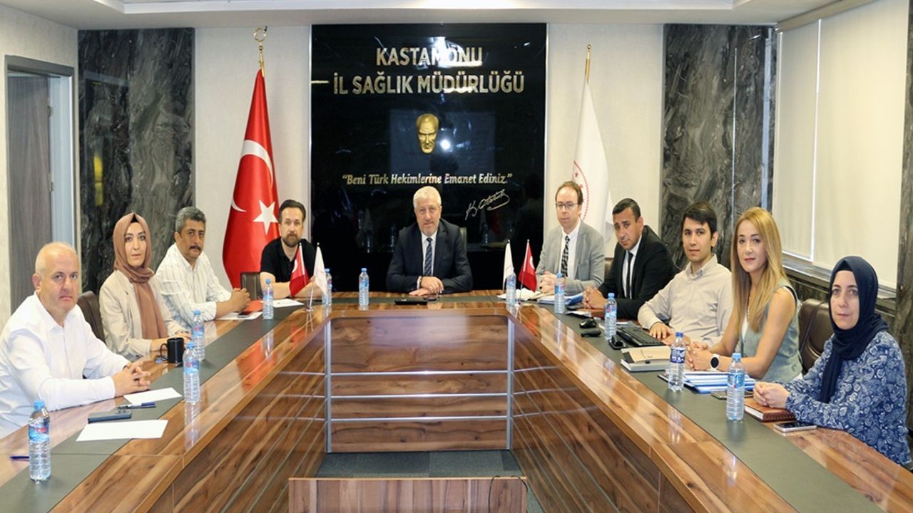 Kastamonu İl Sağlık Müdürlüğü toplantı salonunda düzenlenen toplantıya, İl Sağlık Müdürü Dr. Fevzi Yavuyılmaz başkanlık etti. Toplantıya ayrıca Kamu Hastaneleri Hizmetleri Başkanı Uzm. Dr. Hasan Kepiçoğlu, Acil Sağlık Hizmetleri Başkanı Uzm. Dr. Özgür Yılmaz, Halk Sağlığı Hizmetleri Başkanı Dr. Mehmet Yıldırım, Destek Hizmetleri Başkanı İsmail Hakkı Demir, Halk Sağlığı Hizmetleri Başkan Yardımcısı Dr. Emire Er, Sağlık Hizmetleri Başkan Yardımcısı Ali Ünal, Kamu Hastaneleri Hizmetleri Başkanlığı uzmanları Yasin Yağbasan ve Emine Bezirganoğlu ile Evde Sağlık Hizmetleri Koordinasyon Merkezi Sorumlusu Sevilay Ersoy katıldı.