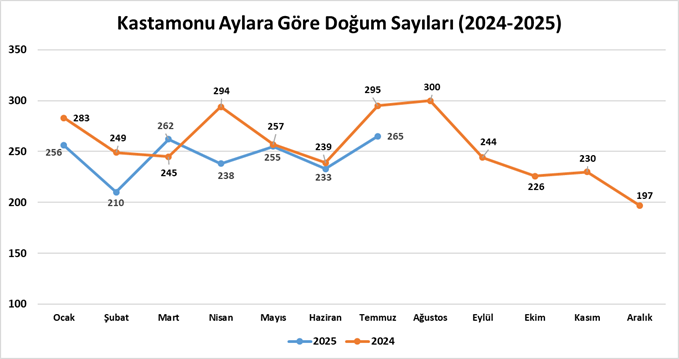 Bu kapsamda TR82 Bölgesi içinde yer alan Kastamonu’nun 2025 yılı ilk 7 aylık doğum istatistikleri de yayımlandı. TÜİK verilerine göre: