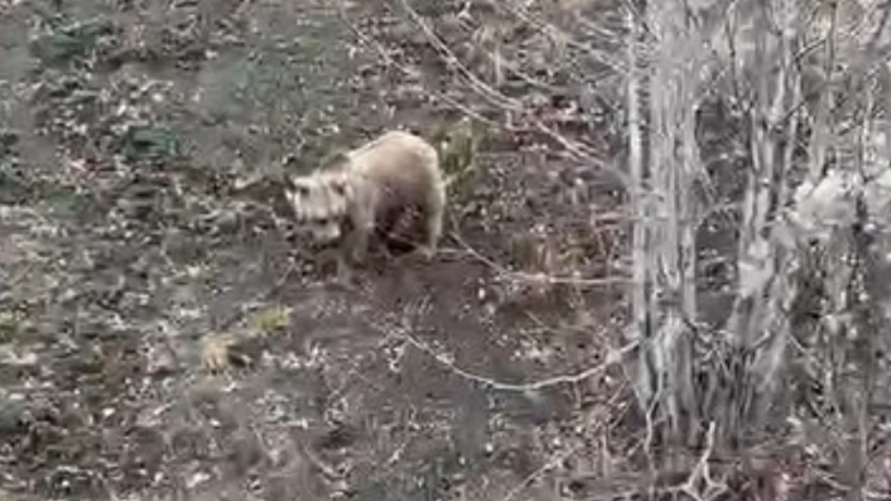 Yol kenarında görülen ayının bitkin ve yorgun hali dikkat çekerken, kış uykusundan yeni çıktığı değerlendirildi.