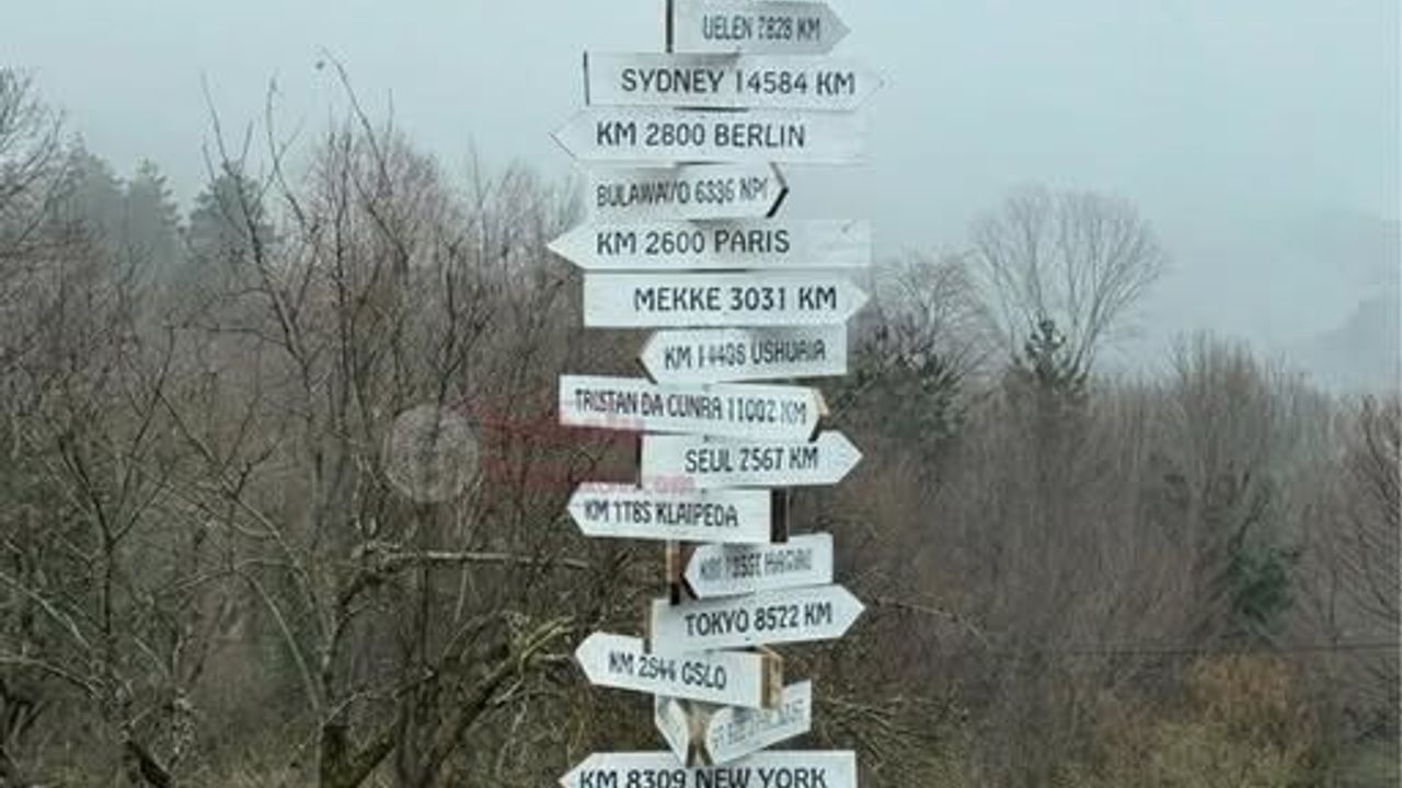 Ankara’dan Paris’e, Londra’dan Tokyo’ya kadar birçok önemli merkezin yer aldığı tabela, köyün doğal manzarasıyla birleşince ziyaretçiler için ilginç bir durak haline dönüştü.