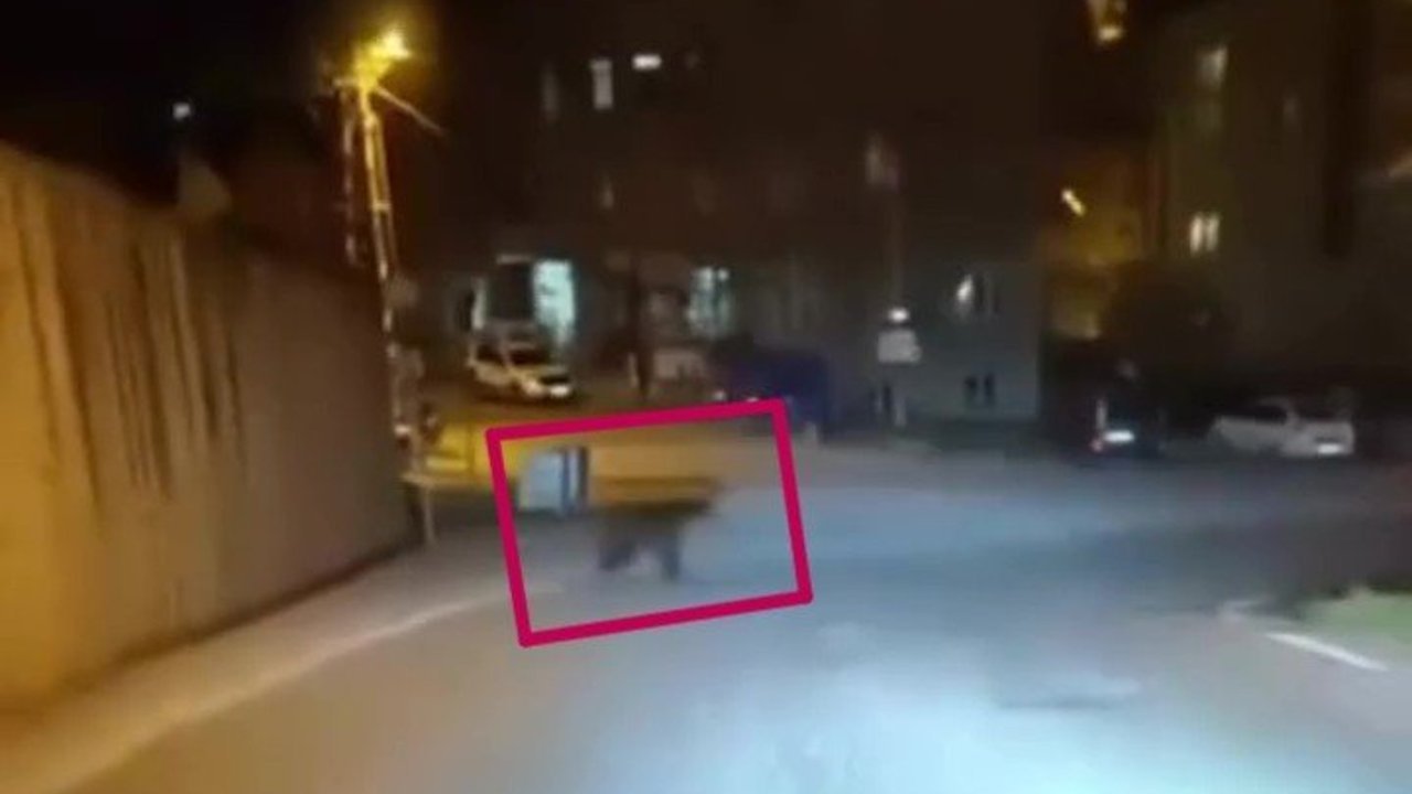 Karanlık sokaklara giren ayı gözden kaybolurken, o anlar araçta bulunan kişiler tarafından cep telefonu ile kaydedildi.