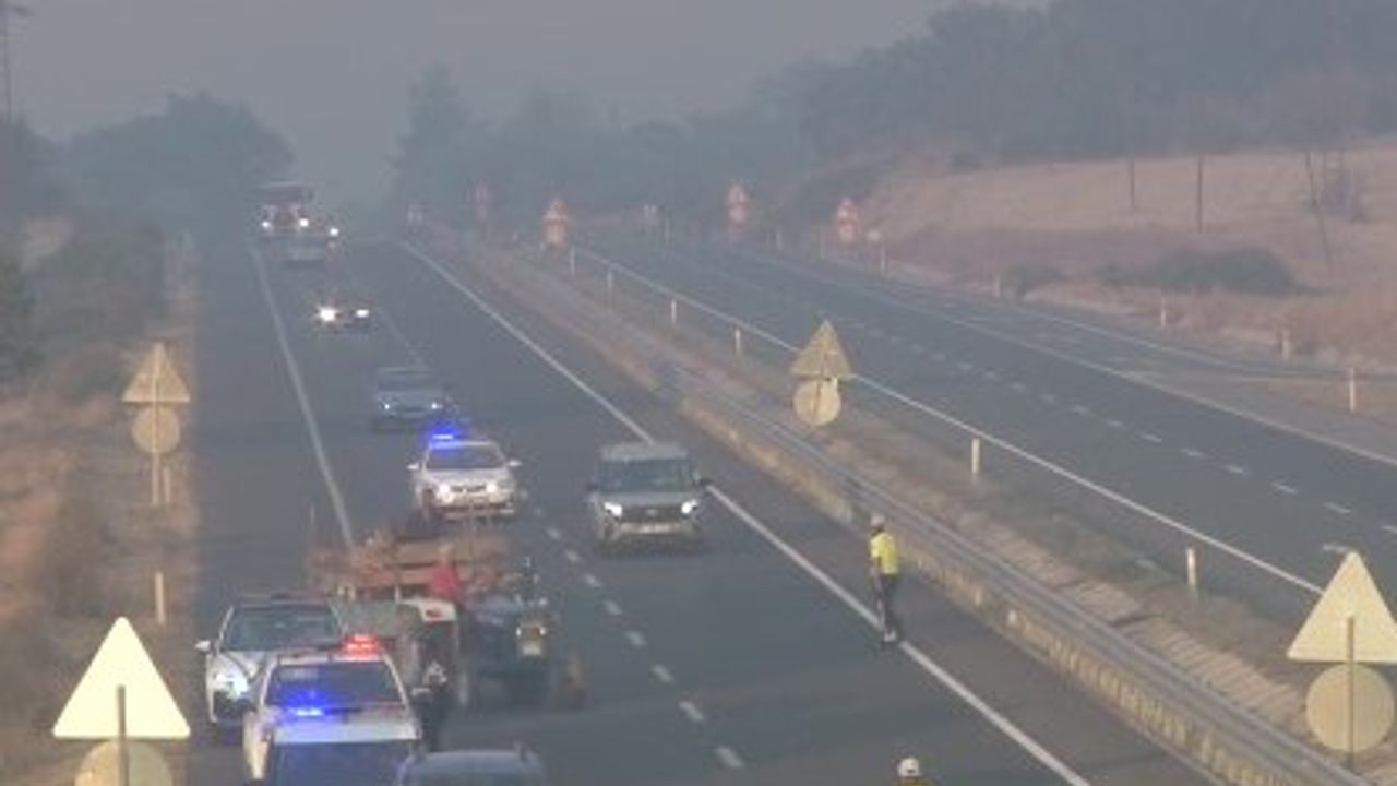 Kastamonu'nun Araç ilçesindeki iki farklı bölgede dün çıkan orman yangını ikinci gününde devam ediyor. Akşam saatlerinde rüzgarla birlikte yangının kuvvetini arttırması sebebiyle Karabük-Kastamonu kara yolunun üzeri dumanla kaplandı. Alınan tedbir çerçevesinde Kastamonu-Karabük kara yolunda, Karabük ve Kastamonu'nun Araç ilçesi yolu çift yönlü olarak araç trafiğine kapatıldı.