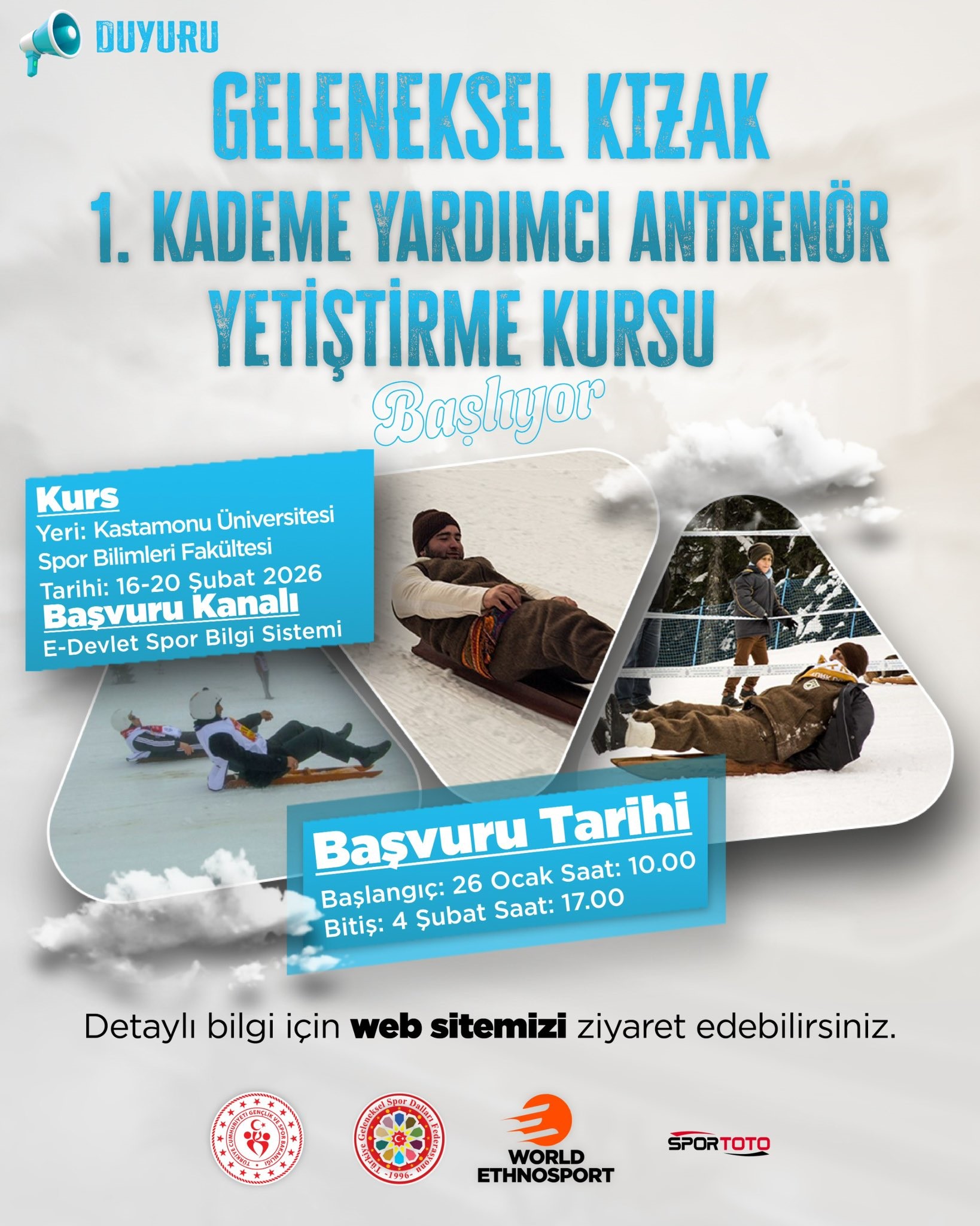 Eğitim programı 16-20 Şubat 2026 tarihleri arasında gerçekleştirilecek. Kursun ücreti 750 TL olarak belirlendi. Eğitimler, Kastamonu Spor Bilimleri Fakültesi ev sahipliğinde yapılacak.