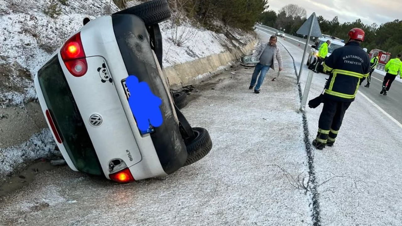 Edinilen bilgilere göre, yağmurun ardından hava sıcaklıklarının ani şekilde düşmesiyle birlikte yol yüzeyinde oluşan buzlanma edeniyle sürücüsünün direksiyon hakimiyetini kaybettiği otomobil, kontrolden çıkarak kaza yaptı.