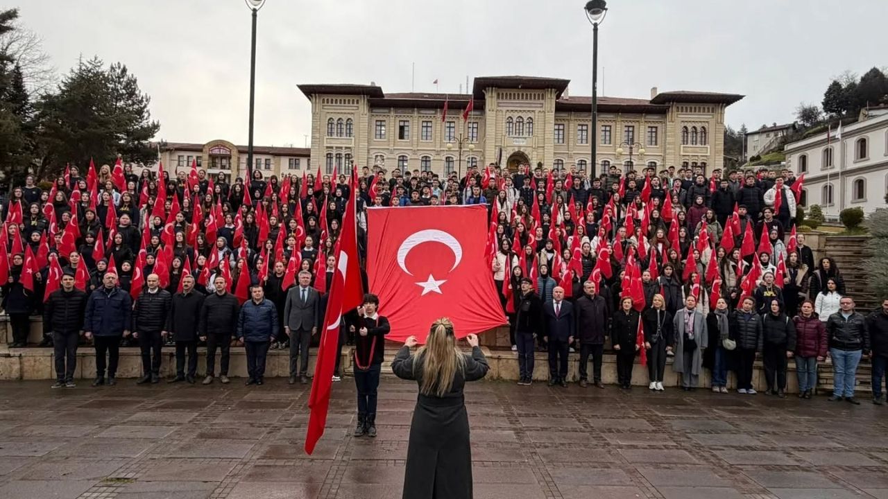 Öğrenciler ve öğretmenler, okul bahçelerinde gerçekleştirilen programlarda Türk bayrağını göndere çekerek İstiklâl Marşı’nı hep bir ağızdan okudu.