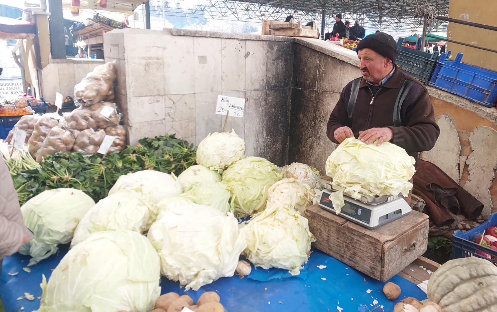 Pazarda kış ürünü kilosu lahana 25, pırasa 30-40, ıspanak 30, Medine kabağı 30,yeşillikler 15-25, Marul 20-30, Salatalık ve Domates 100, Kuru Soğan ve Patates 10-15-20, Mandalina 25-30, Portakal 40-50, Muz 70-80, Elma 40-50, limon 60-75 liradan satışa sunuldu.
