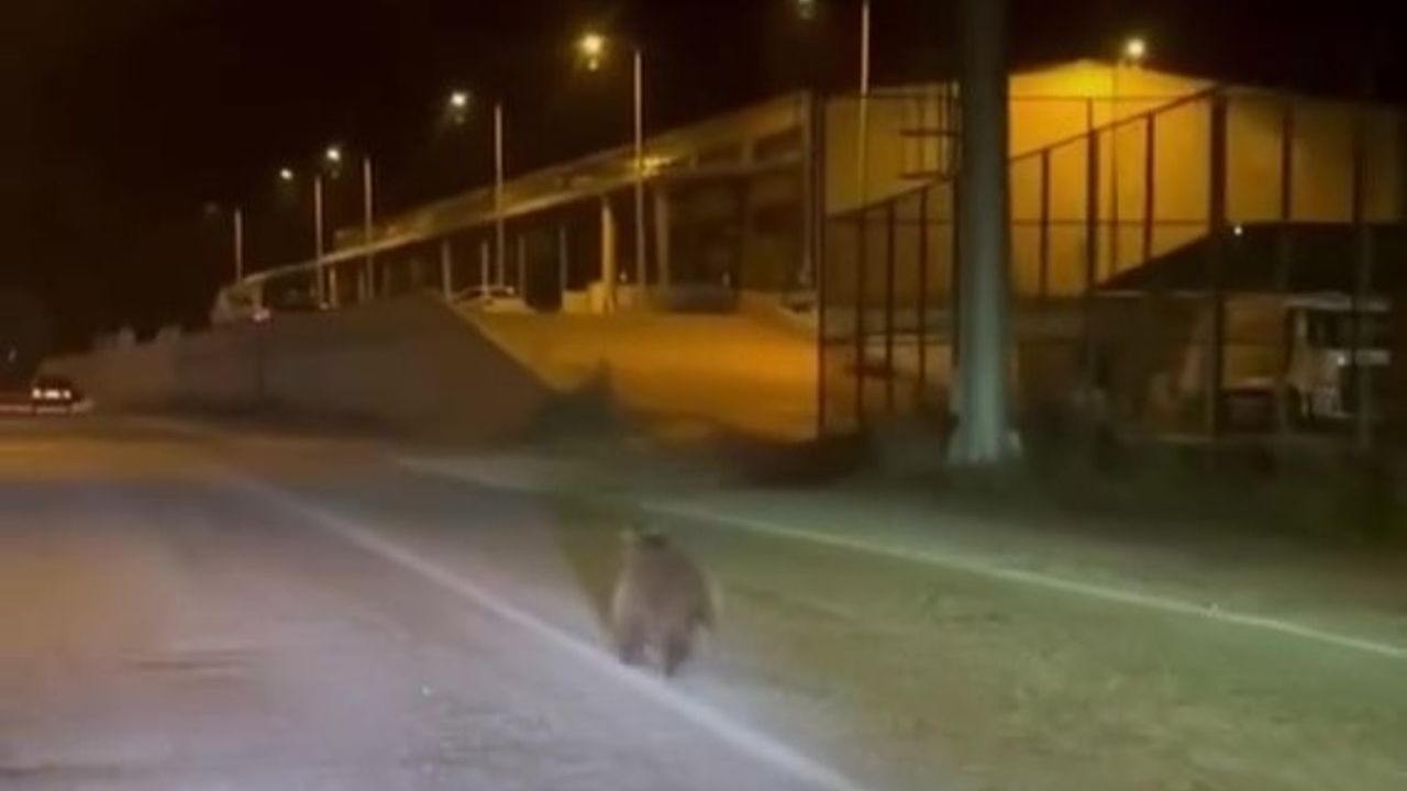 Kastamonu’nun Abana ilçesi Sabri Kalafat Caddesi üzerindeki Sanayi Sitesi yolunda bir yavru ayı, gece saatlerinde dolaşırken görüntülendi.