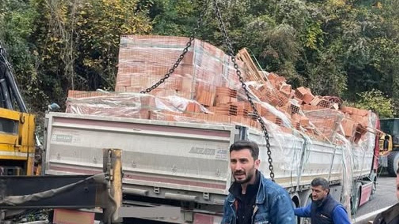Kastamonu’nun İnebolu-Doğanyurt ilçe yolunda kayan tırın üzerindeki tuğlaların bir kısmı yol kenarına döküldü.
