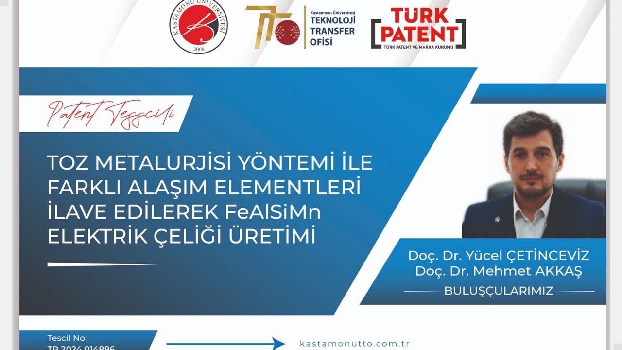 Kastamonu Üniversitesi hak sahipliğinde başvurusu yapılan; Mühendislik ve Mimarlık Fakültesi öğretim üyeleri Doç. Dr. Yücel Çetincevirz ve Doç. Dr. Mehmet Akkaş’ın buluşçusu olduğu “Toz Metalurjisi Yöntemi ile Farklı Alaşım Elementleri İlave Edilerek FeAlSiMn Elektrik Çeliği Üretimi” başlıklı çalışma, yerli ve yüksek katma değerli üretim hedefleri doğrultusunda önemli bir kazanım olarak değerlendiriliyor.